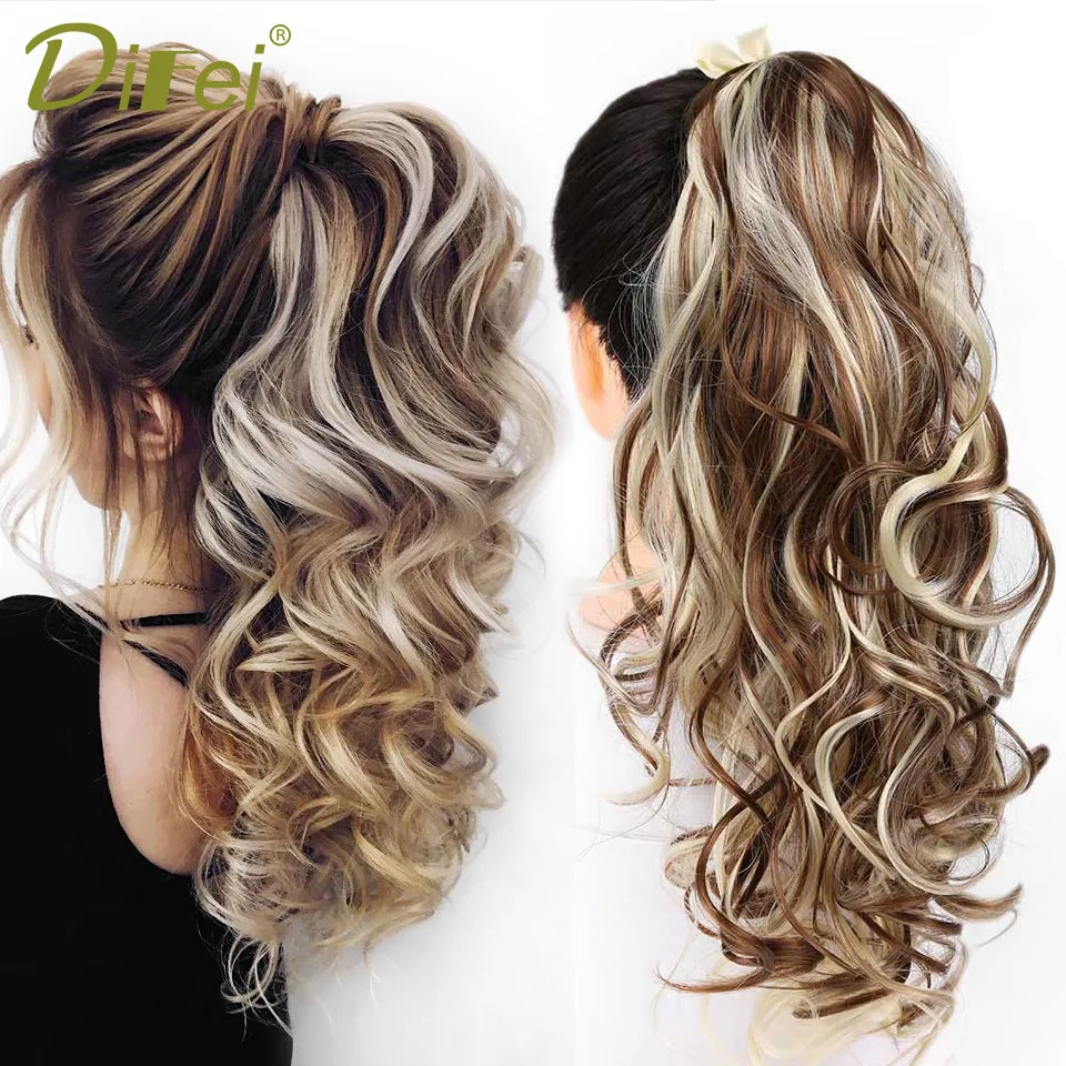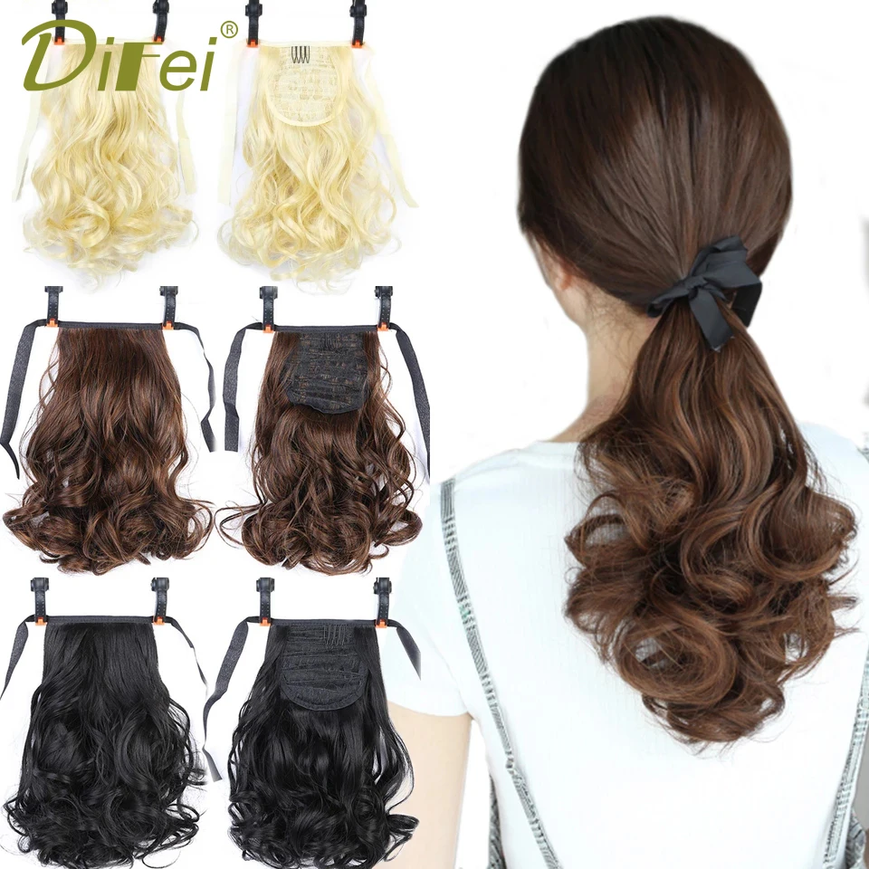 DIFEI волнистые синтетические накладные волосы на завязках для конского хвоста коричневый термостойкий конский хвост для женщин накладные волосы