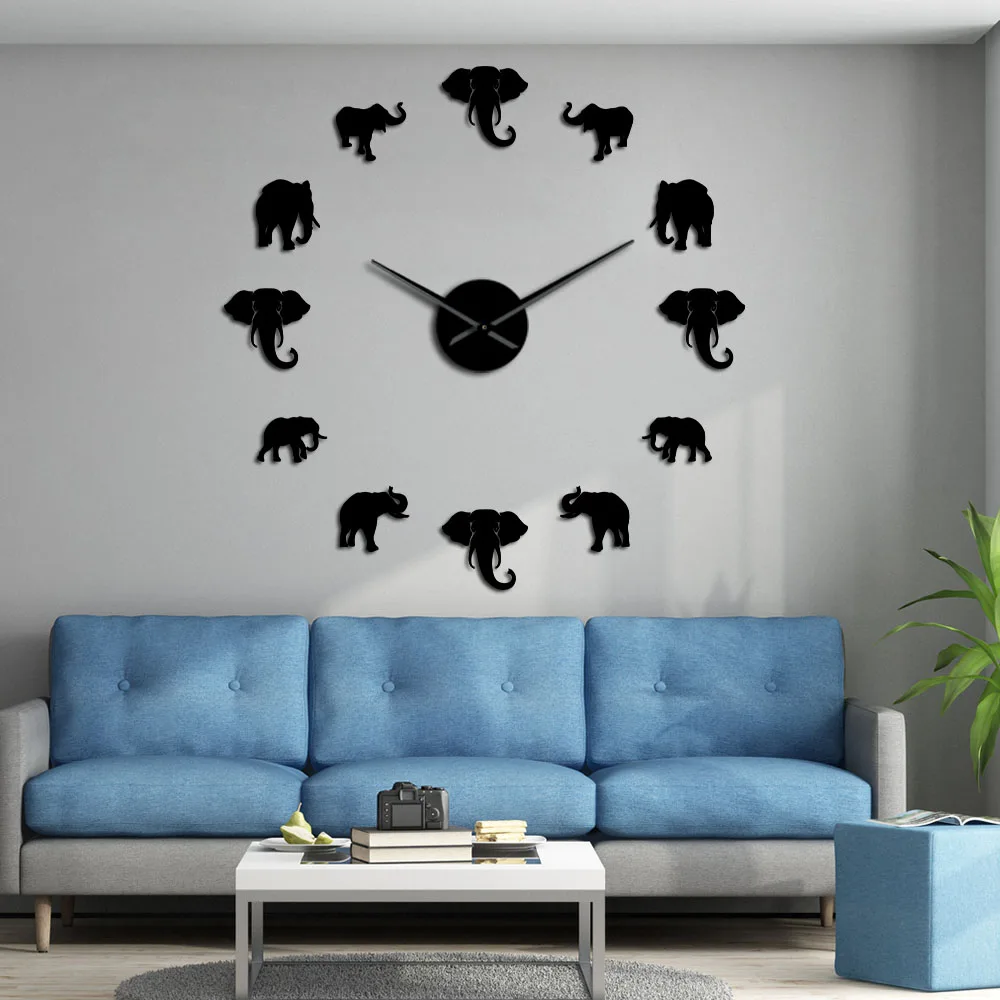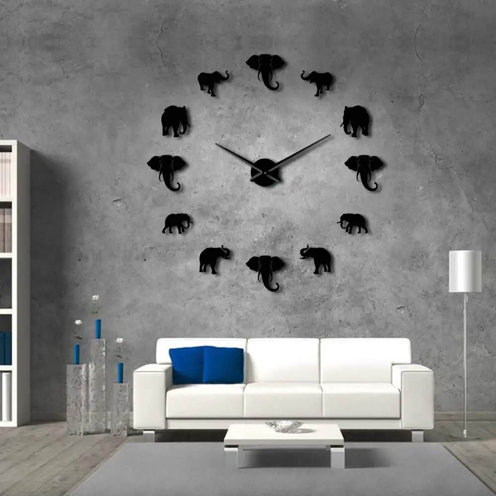 Jungle Animals Elephant DIY большие настенные часы, домашний декор, современный дизайн, зеркальный эффект, гигантские безрамные Слоны, DIY часы