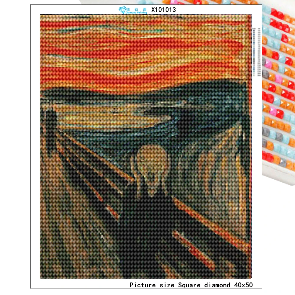 Картина из квадратныхкруглых страз, вышивка крестиком, крик, стразы, хрустальное рукоделие, алмазная вышивка, декоративная