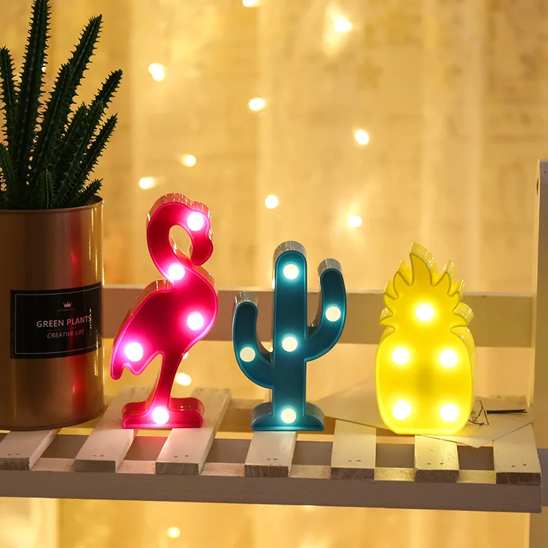 Стильный мини-ночник 3D с фламинго, ананасом, кактусом для вечеринки для будущей матери, светодиодная декоративная лампа с буквой для рождественского украшения спальни, подарок для ребенка, В