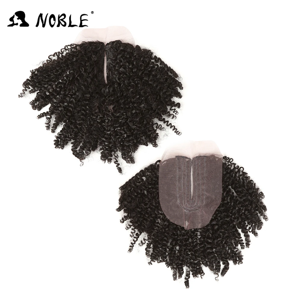 Благородные синтетические волосы вьющиеся пряди с закрытием средняя часть натуральный черный 14 дюймов Короткие афро, привлекательный локон волосы термостойкие