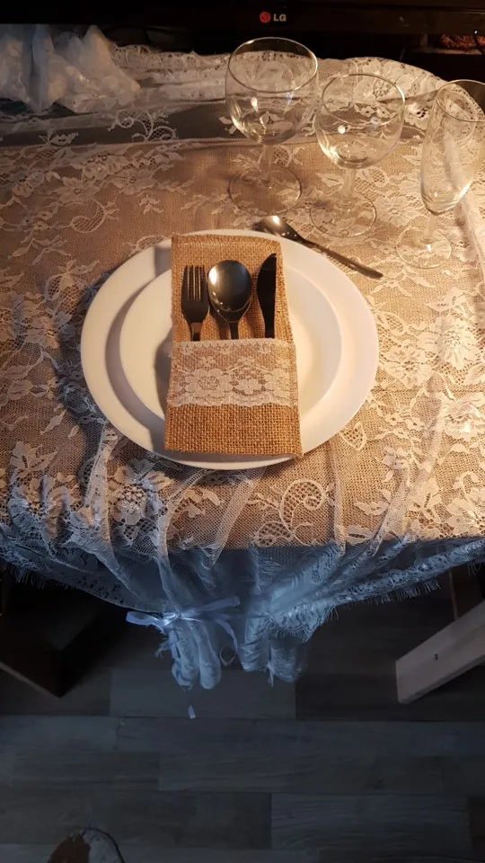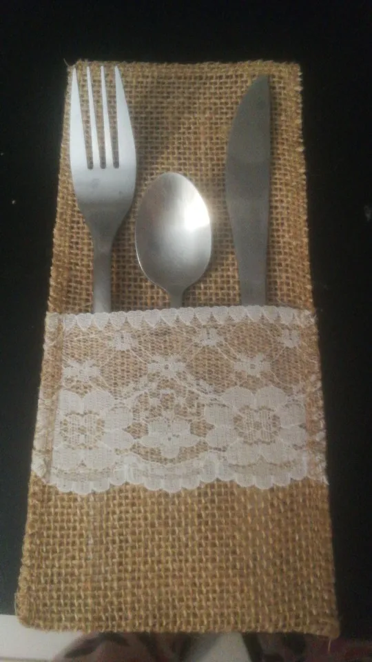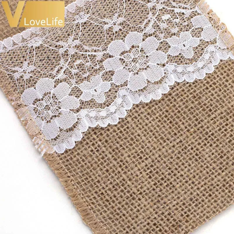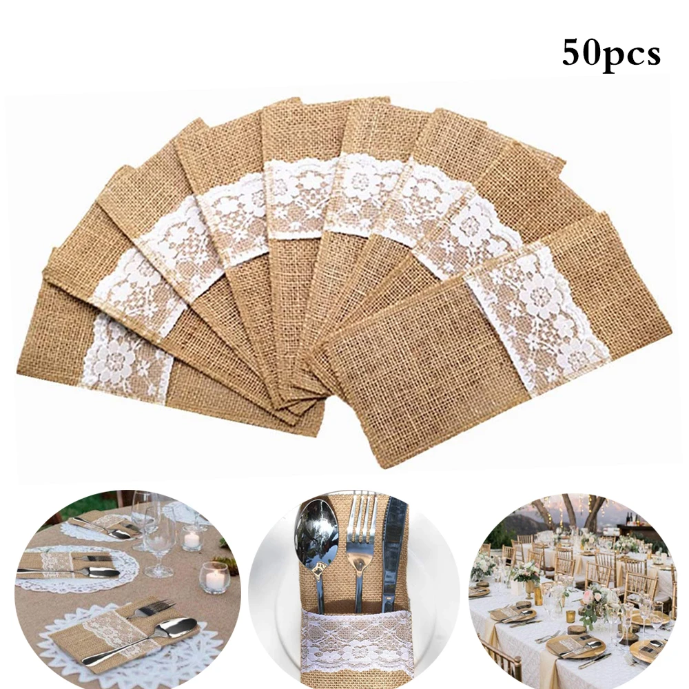 50 шт. мешковиная кружевная мешочек для столовых приборов посуда Hessian деревенский стиль, Джут Рождественский Декор свадебное украшение стола Свадебная вечеринка