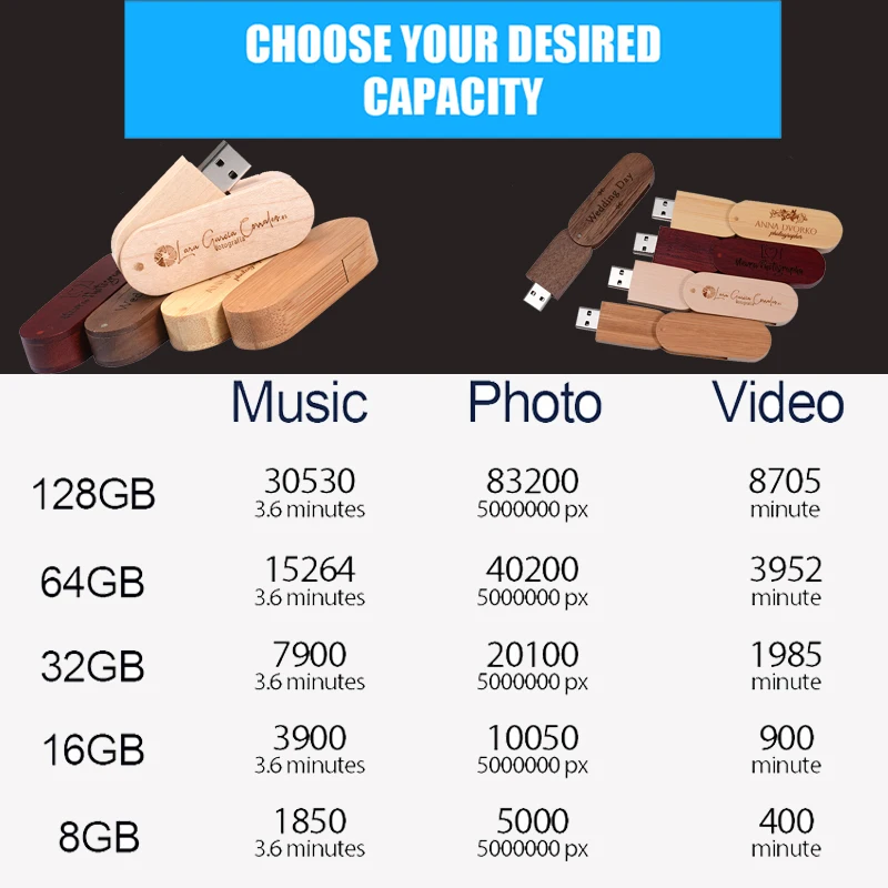 USB-флеш-накопитель JASTER, деревянный корпус, 4 ГБ, 16 ГБ, 32 ГБ, 64 ГБ