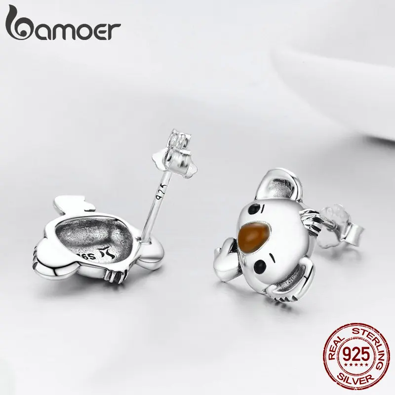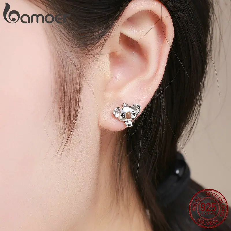 BAMOER подлинное 100% Серебро 925 пробы животное милый коала серьги в виде медведя для женщин Стерлинговое серебро ювелирные изделия подарок SCE381