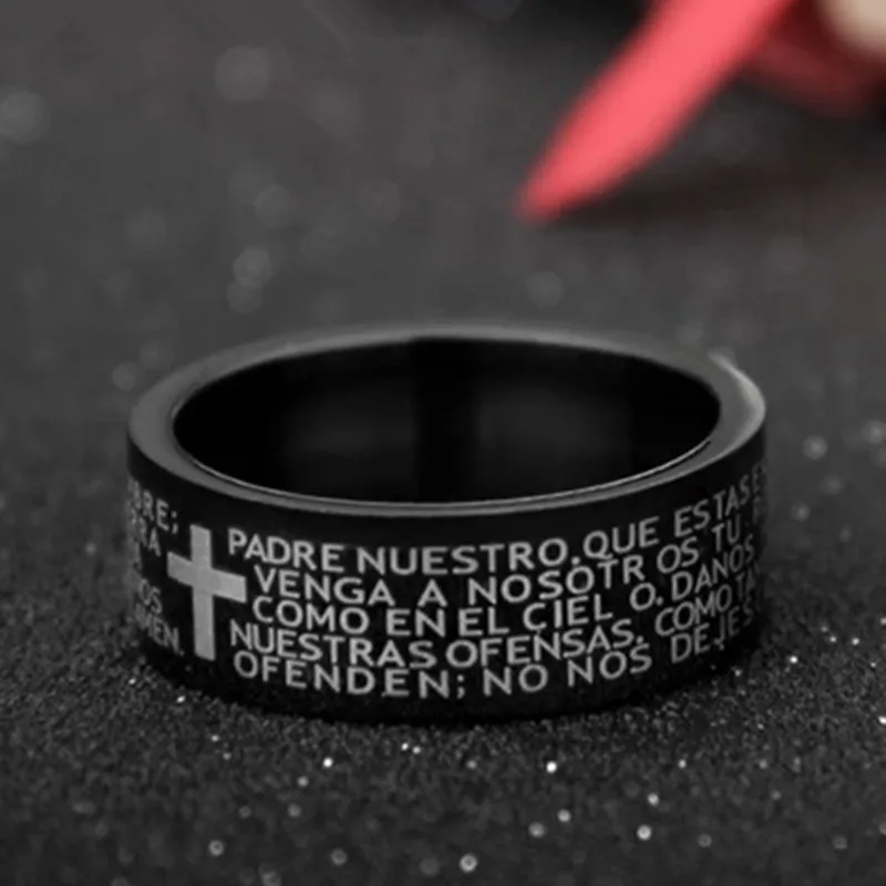 Классическое мужское кольцо JUCHAO из титановой стали с текстами из Библии и крестом Иисусом