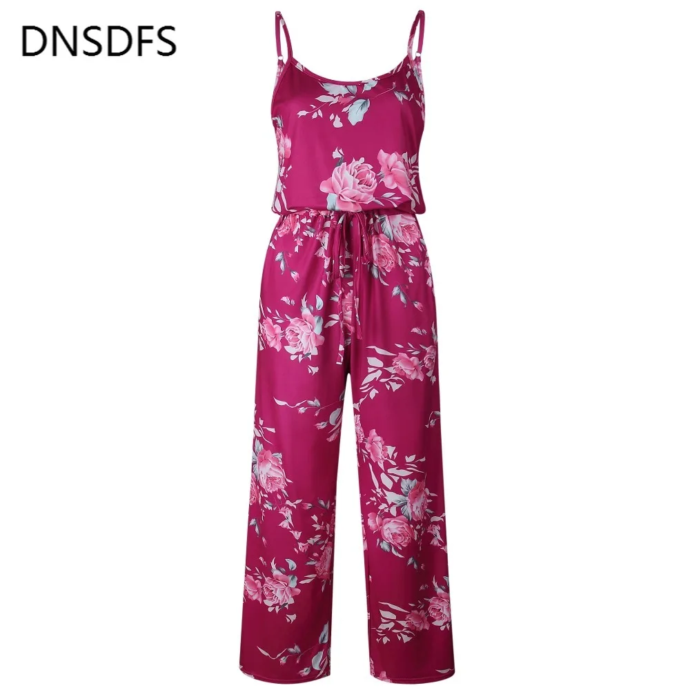 S-3XL Плюс Размер Сарафан Повседневная Весна Лето Комбинезоны Сексуальная Рукавов Плотно Талия Цветочный Печати Свободные Брюки Женские Комбинезоны Красный