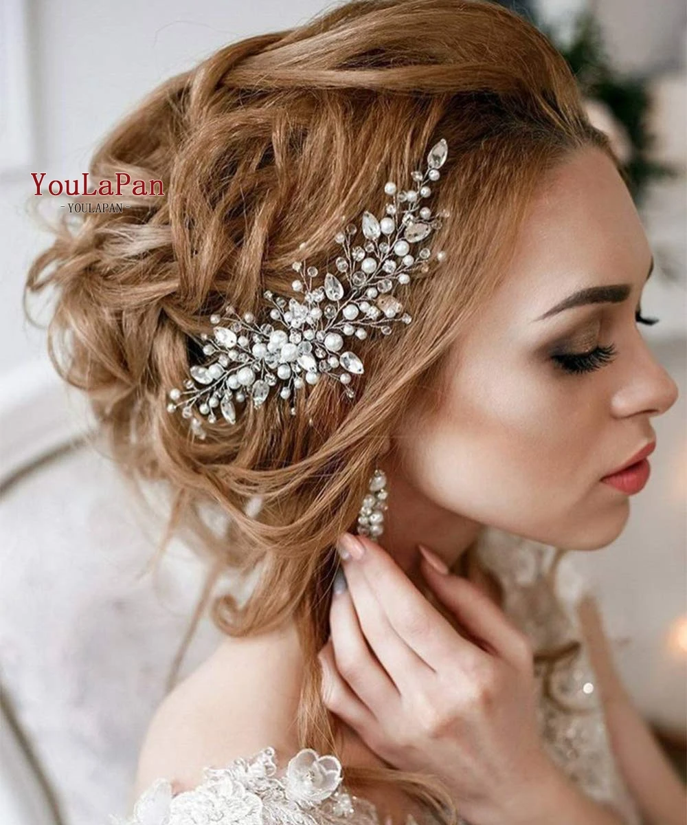 TOPQUEEN свадебные аксессуары для волос Свадебные аксессуары для волос Головные уборы алмазные и хрустальные заколки для волос Расческа жемчужные украшения для волос невесты
