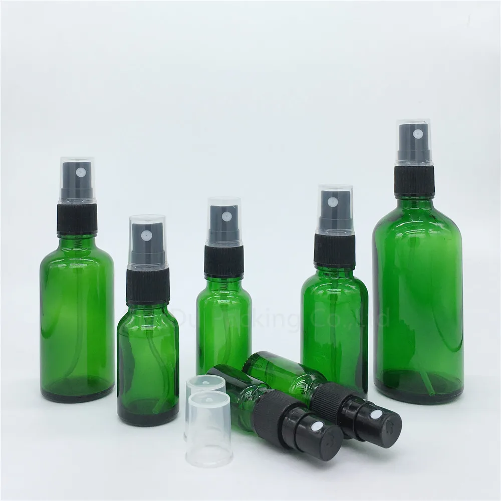 Зеленый стеклянный пустой флакон для духов, 5 мл, 10 мл, 15 мл, 20 мл, 30 мл, 50 мл, 100 мл, распылитель, многоразовый флакон