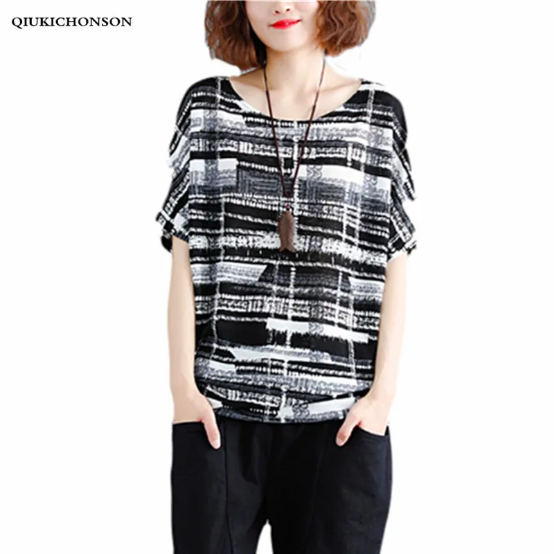 Qiukichonson vogue размера плюс футболка для женщин 2018 летние топы женские туфли большого размера с принтом, футболка с длинными рукавами 5xl Повседневная Свободная футболка femme