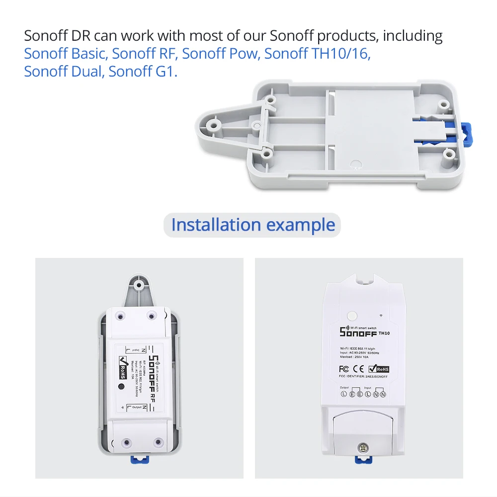 Умный переключатель SONOFF для BasicRF Pow TH1016 Dual Wifi DR DIN Tray, Чехол-держатель с креплением, регулируемый корпус, домашний Alexa