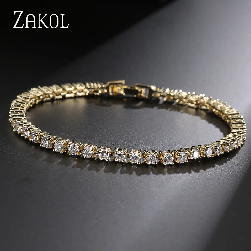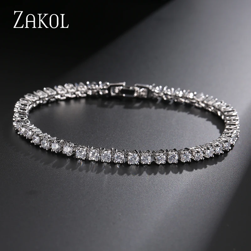ZAKOL трендовый 3 мм круглый браслет для тенниса с кубическим цирконием и браслеты модные ювелирные изделия с кристаллами для женщинДевушек Аксессуары FSBP032