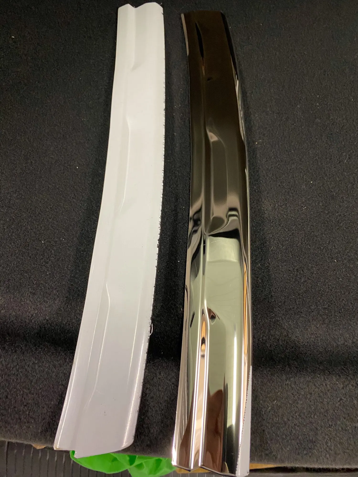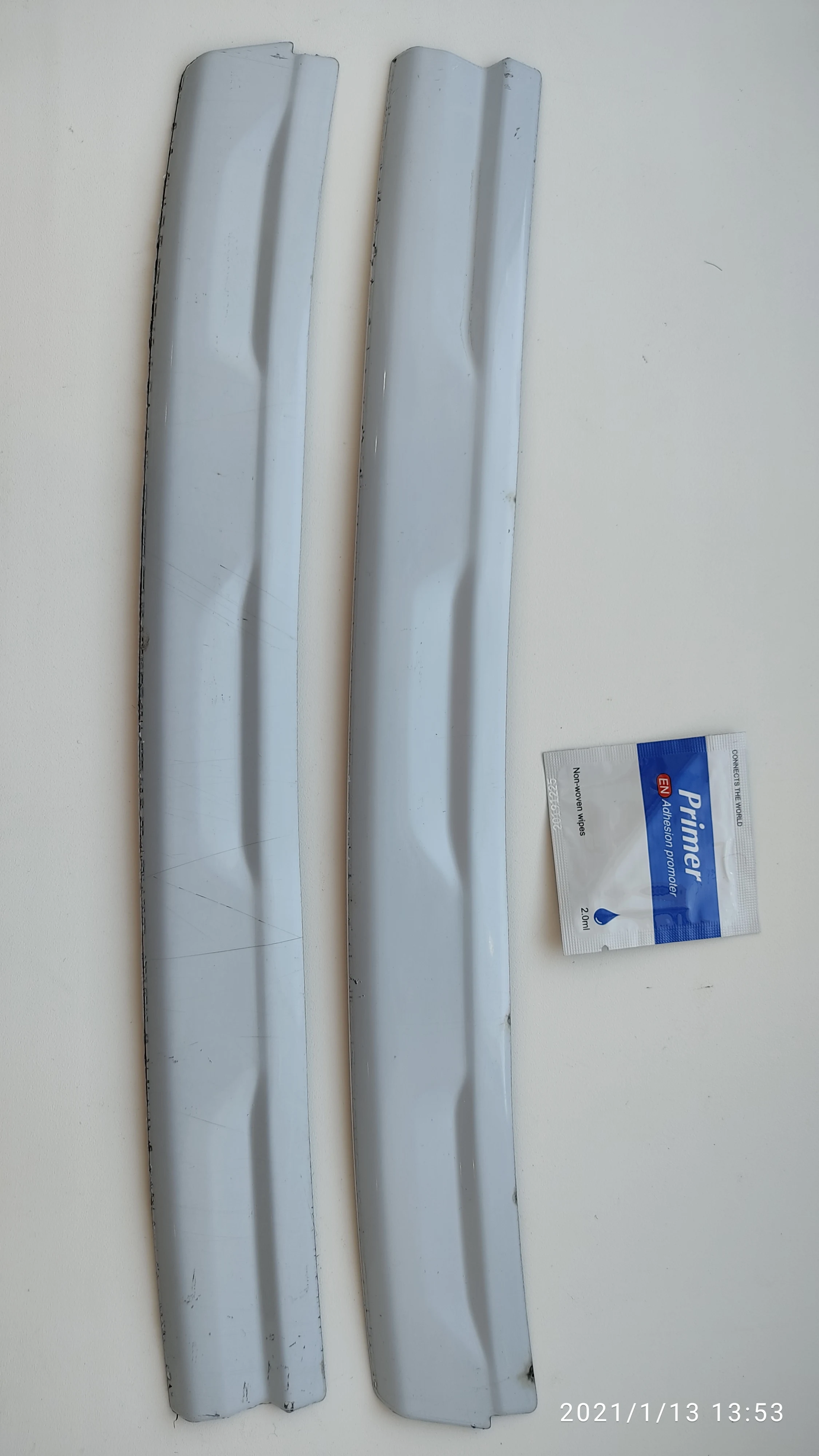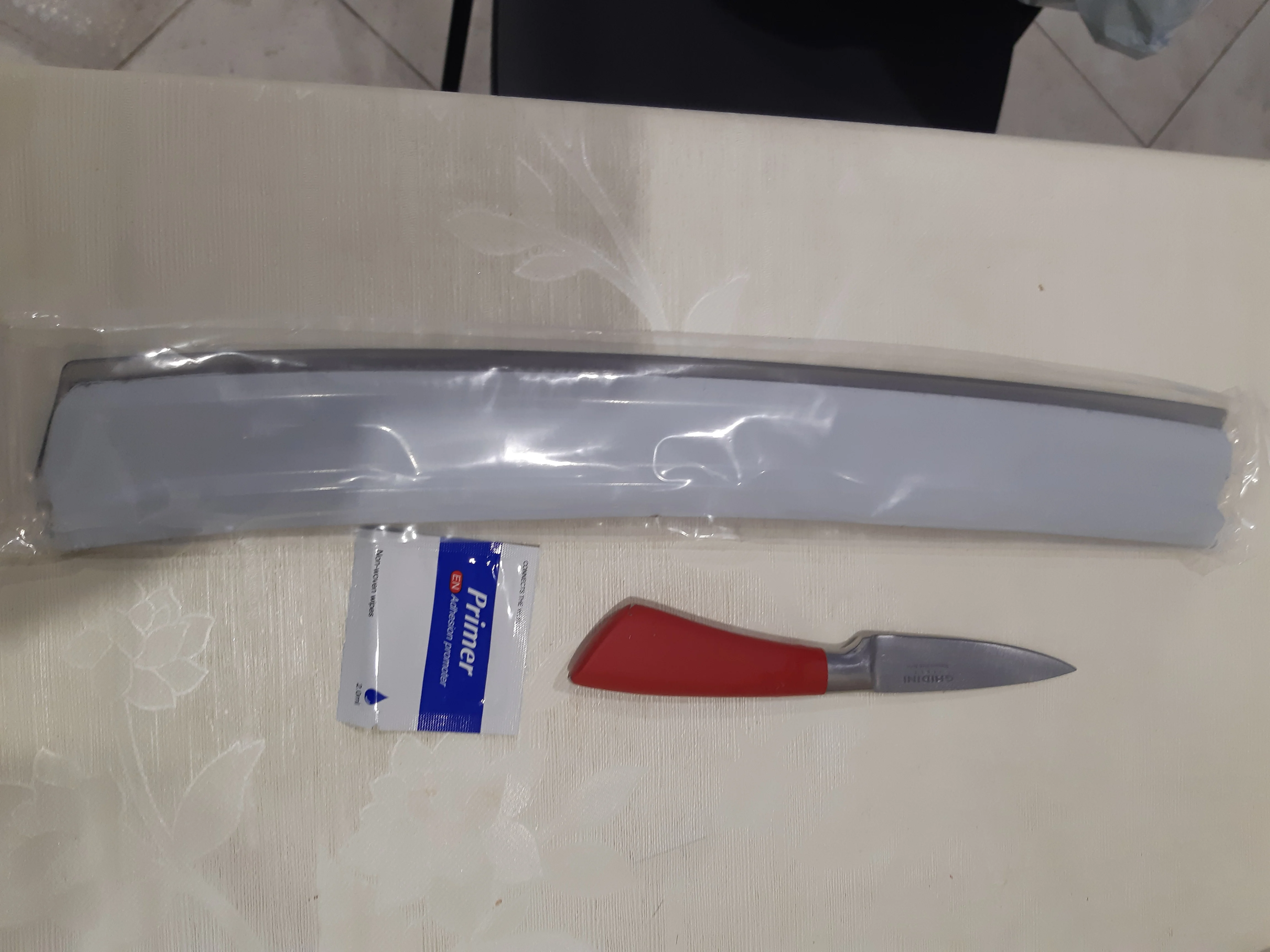Посылка пришла менее чем за месяц. Накладки были завёрнуты в пупырку, в довольно большом рулоне. После распаковки первое, что бросилось в глаза это как-бы ржавые пятна на одной из накладок (см фото). После того как снял защитную плёнку на этой накладке были обнаружены пятна. Думаю, что накладки долго не проживут - пойдут ржавыми пятнами. Естественно, что в отзывах этого нет, так как дополнять отзыв к тому времени когда пойдут пятна ржавчины уже не получается - время вышло. Сам буду устанавливать накладки летом, когда будет тепло. Поэтому как они будут смотреться со штатным хромом не знаю. Качеством железяк разочарован, ожидал большего. Скотч не 3М, обычный красный. Надеюсь будет держать.