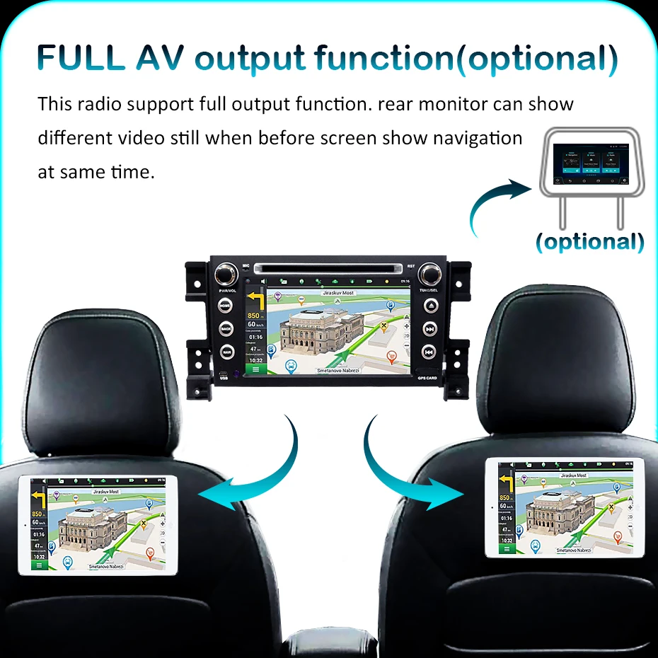 Полная функция вывода AVЭто Радио имеет полную функцию выхода AV (опционально), эта функция принесет много удовольствия детям и вашей семье, которые находятся на заднем сиденье в долгом путешествии. Они могут смотреть телевизор, фильмы, мультфильмы, видео на Youtube, мВ и другие видео. На рынке большинство торговых радиостанций не имеют функции выхода AV.