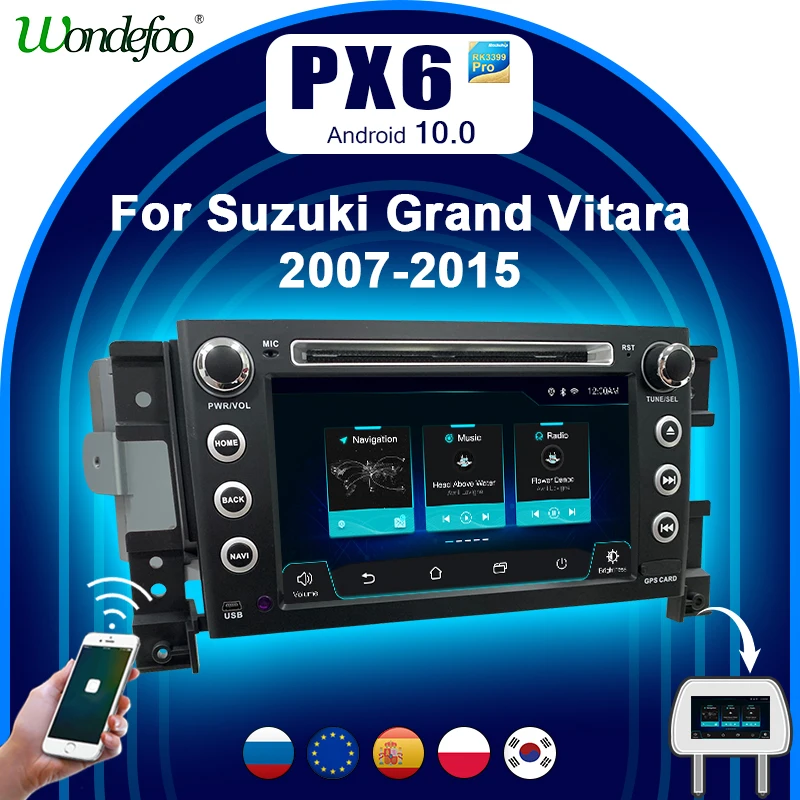 автомагнитола 2дин андройд 10 с экраном магнитола PX6 для SUZUKI GRAND VITARA 2007-2015 навигация Авто Аудио видео плееры интеллектуальные системные автомагнитола Мультимедиа блютуз стерео Carplay магнитофон в машину