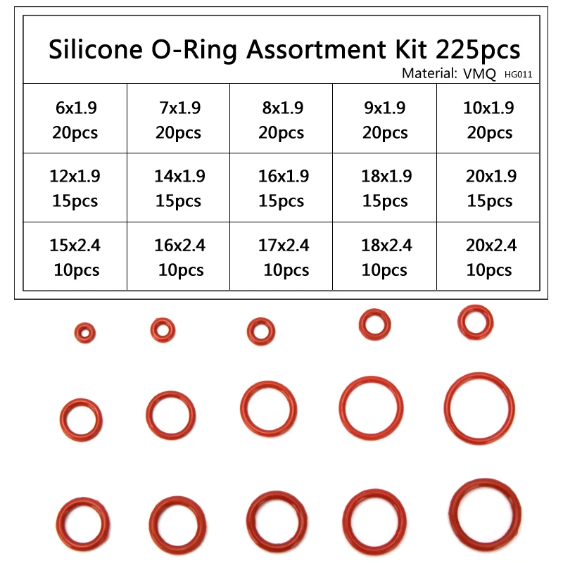 Силиконовые уплотнительные кольца для пейнтбола, внешний диаметр 6-30 мм, CS красное уплотнительное кольцо мм, 1,5 мм, 1,9 мм, 2,4 мм, 3,1 мм, 15 Размеров, 225 шт.компл. HG011