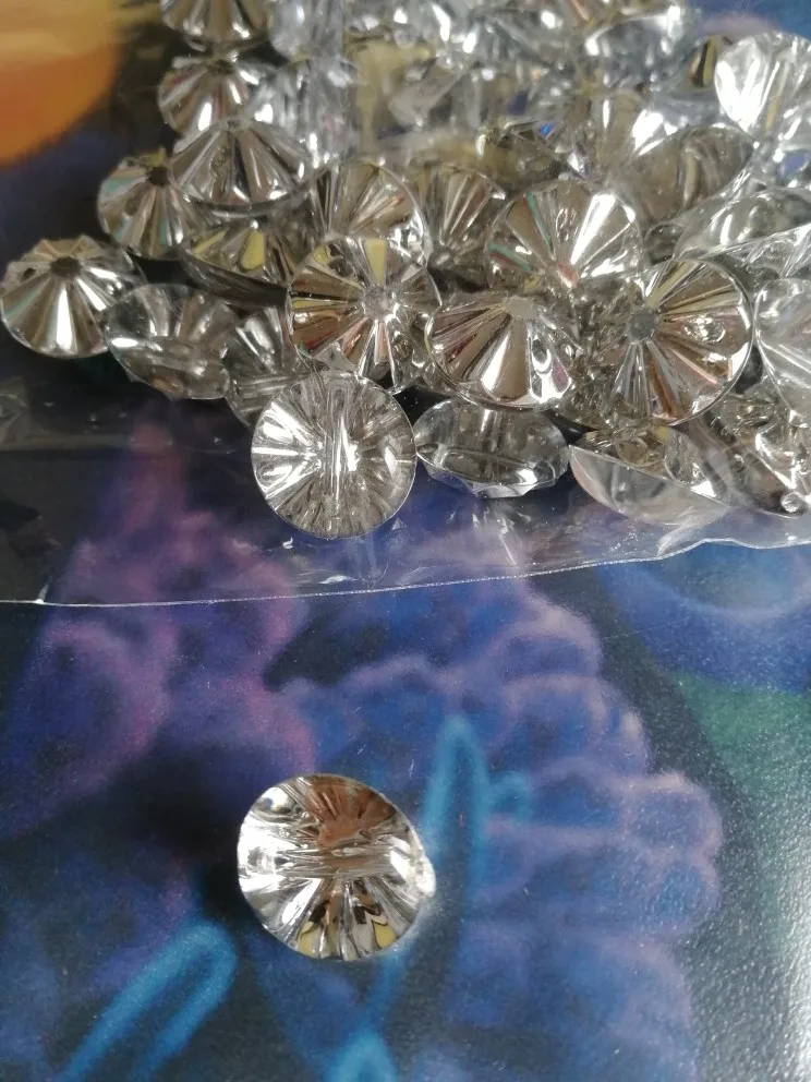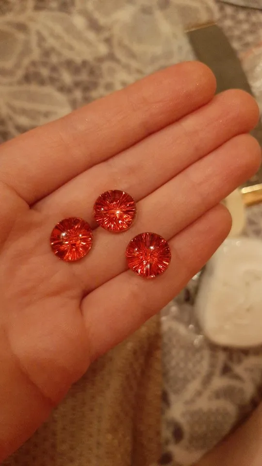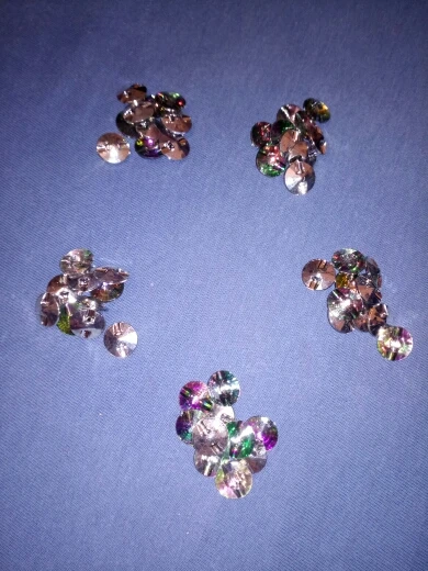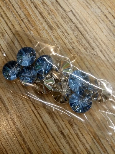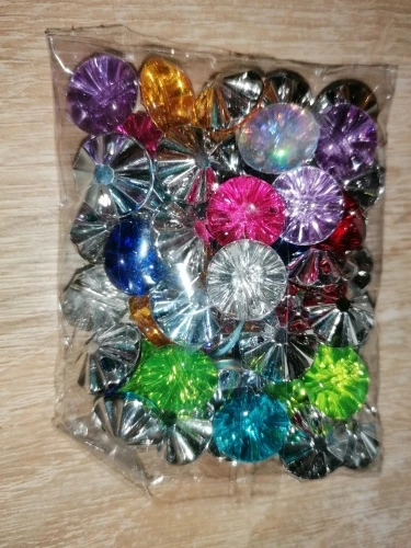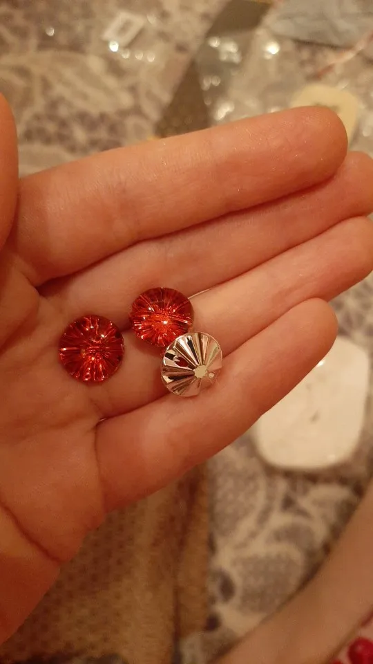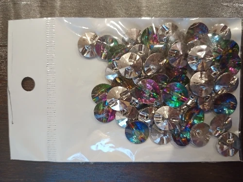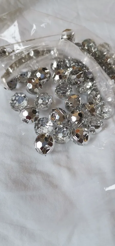 Пуговицы очень красивые, с обратной стороны покрыты серебряным напылением, с лицевой переливаются. НО! Они очень маленькие, прям совсем. Брала на вязаную кофту, теперь не знаю, они на кофте и затеряются и застёгивать их задолбаешься. А на какую-то лёгкую вещь, как декор будет очень красиво. В любом случае, рекомендую. Посылку отправили быстро, дошла тоже быстро.