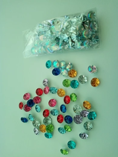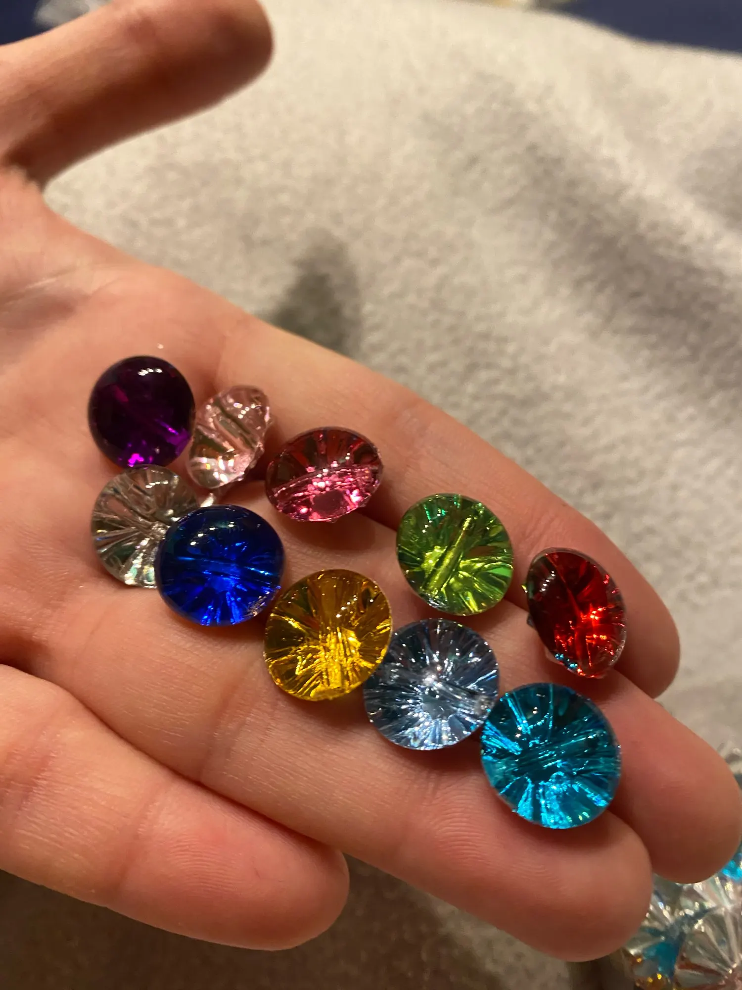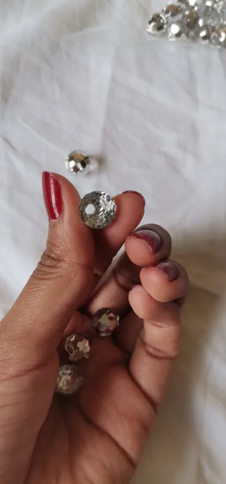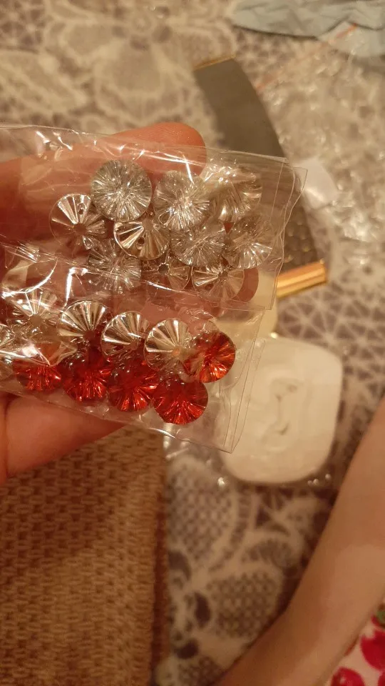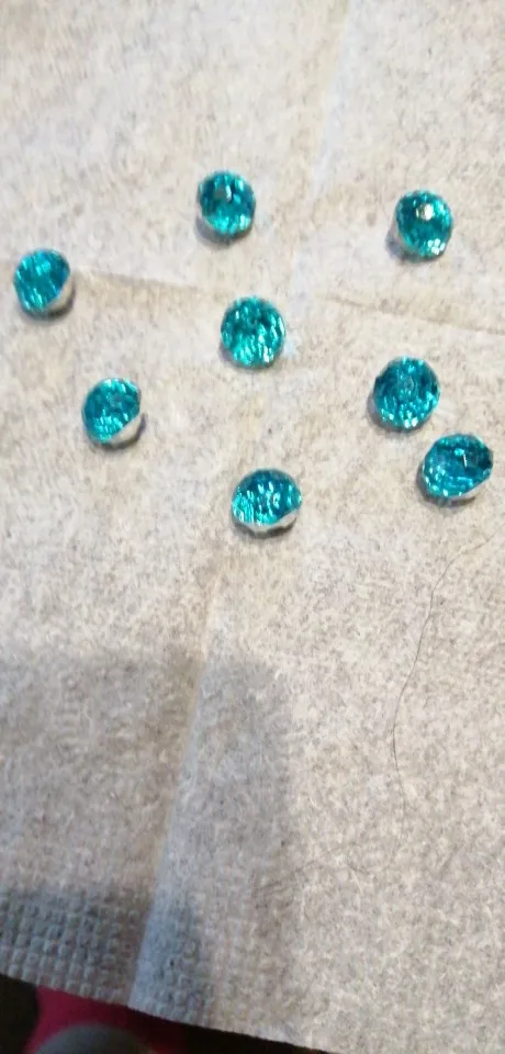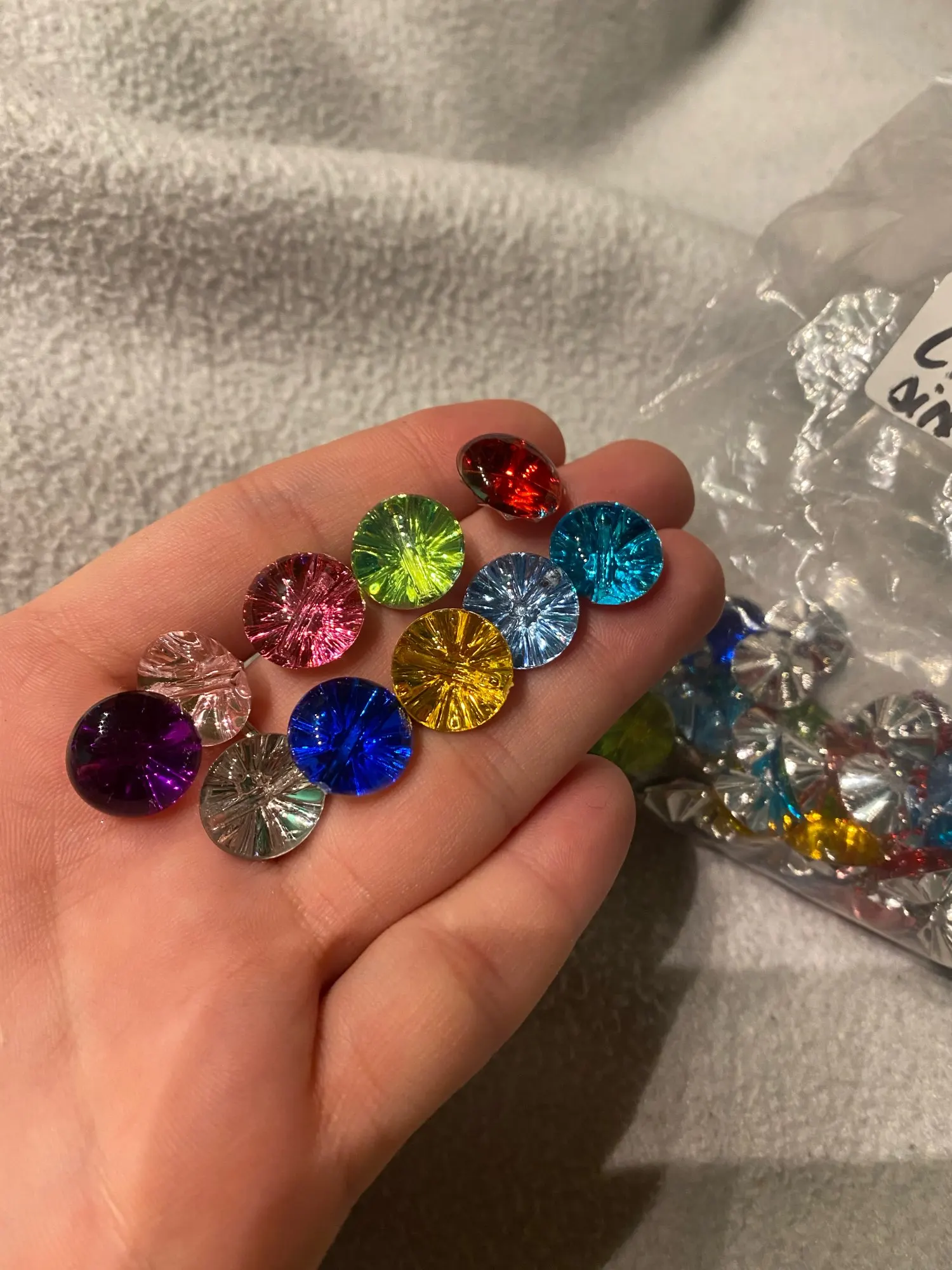 Пуговицы очень красивые, с обратной стороны покрыты серебряным напылением, с лицевой переливаются. НО! Они очень маленькие, прям совсем. Брала на вязаную кофту, теперь не знаю, они на кофте и затеряются и застёгивать их задолбаешься. А на какую-то лёгкую вещь, как декор будет очень красиво. В любом случае, рекомендую. Посылку отправили быстро, дошла тоже быстро.
