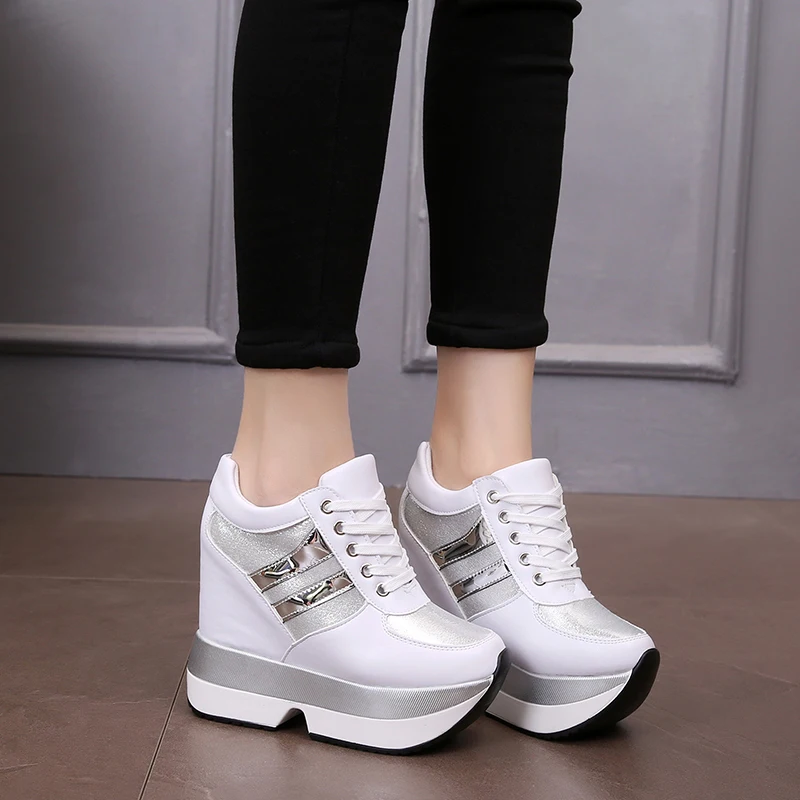 Женские кроссовки на высокой платформе, повседневные дышащие кроссовки, увеличивающие рост, на толстой подошве 12 см, осень 2018