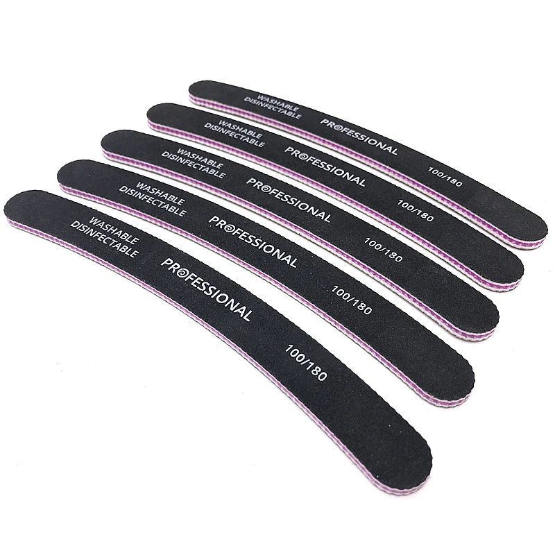 Пилка для ногтей, 5 шт., сильная пилка для педикюра, изогнутая, для маникюра, черная, 100180 крупной зернистости, пилки для ногтей, Nagelfeile