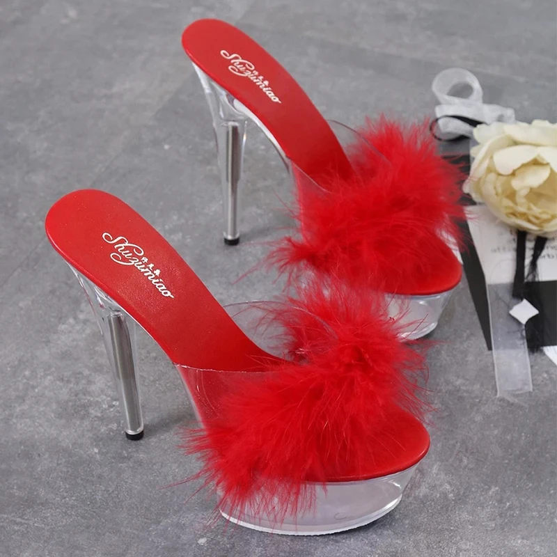 Шуумиао2020 женские Меховые Туфли; Пикантные туфли на высоком каблуке 15 см; Водонепроницаемые сандалии на платформе; Туфли со стразами; Обувь для свадьбы и банкета