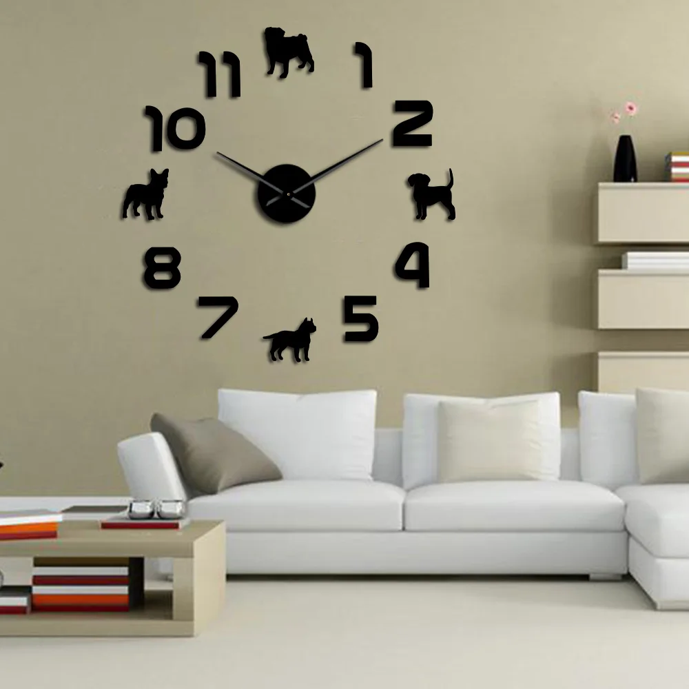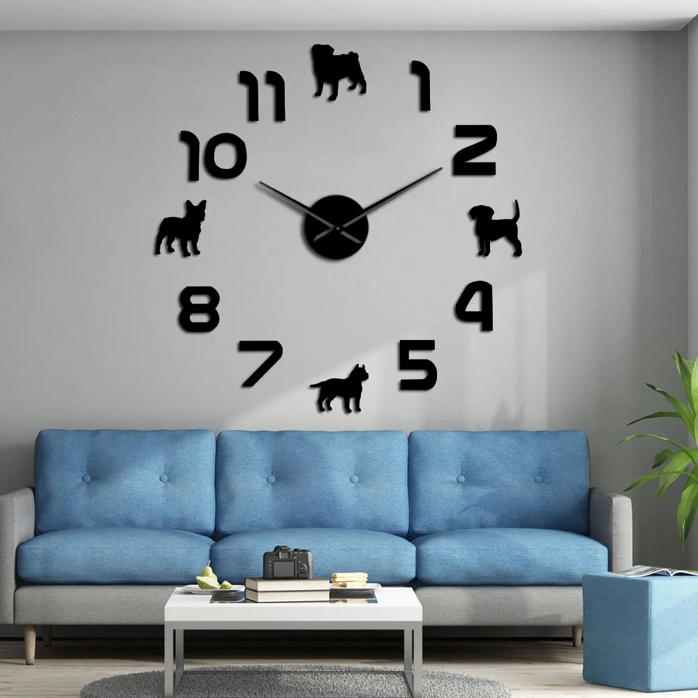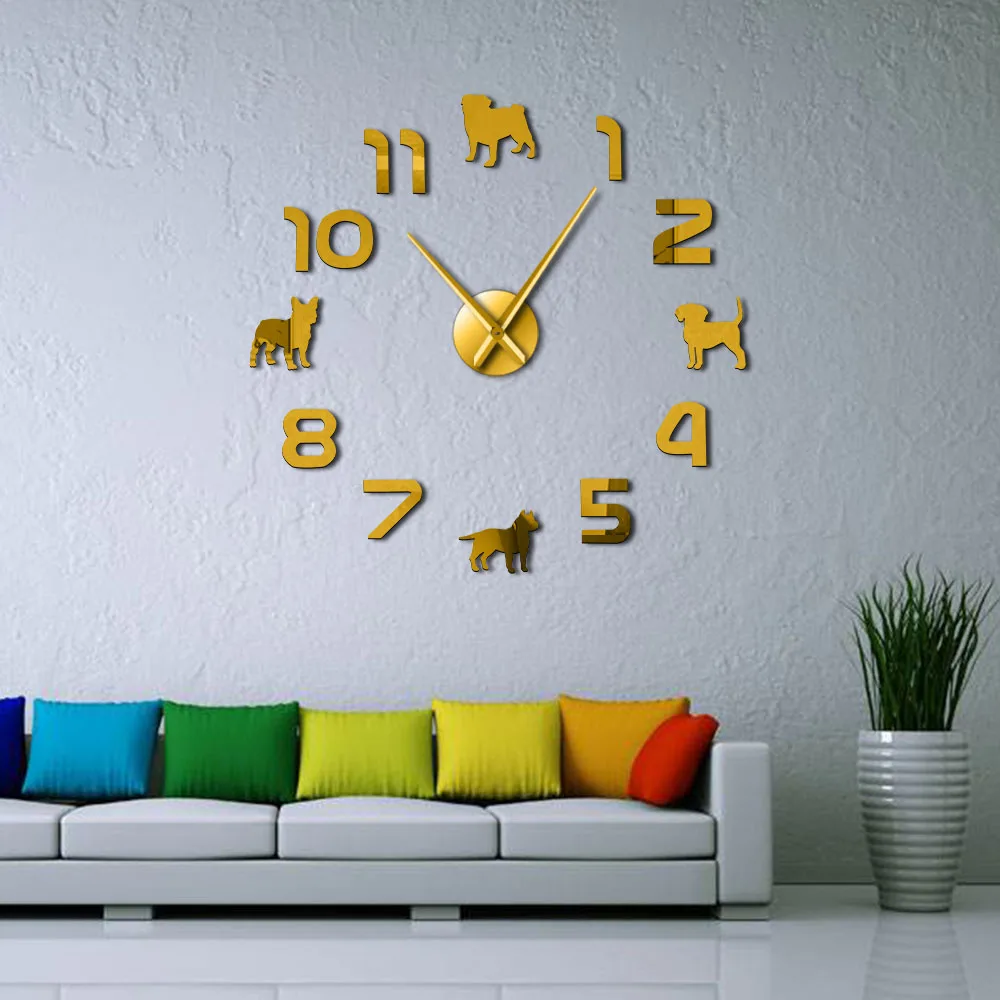 Большие настенные часы с изображением щенков разных пород собак, мопса, питбуля, французского бульдога, Бигля с арабскими цифрами, гигантские настенные часы