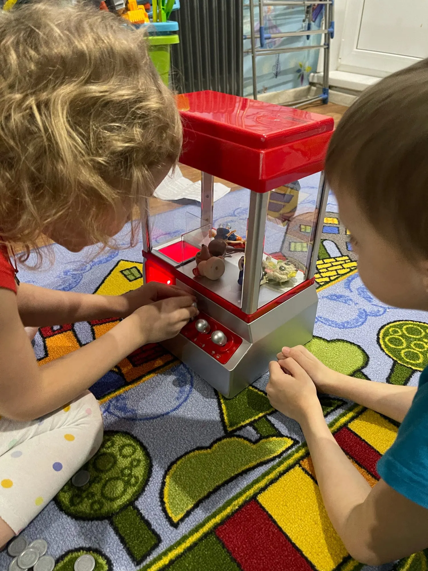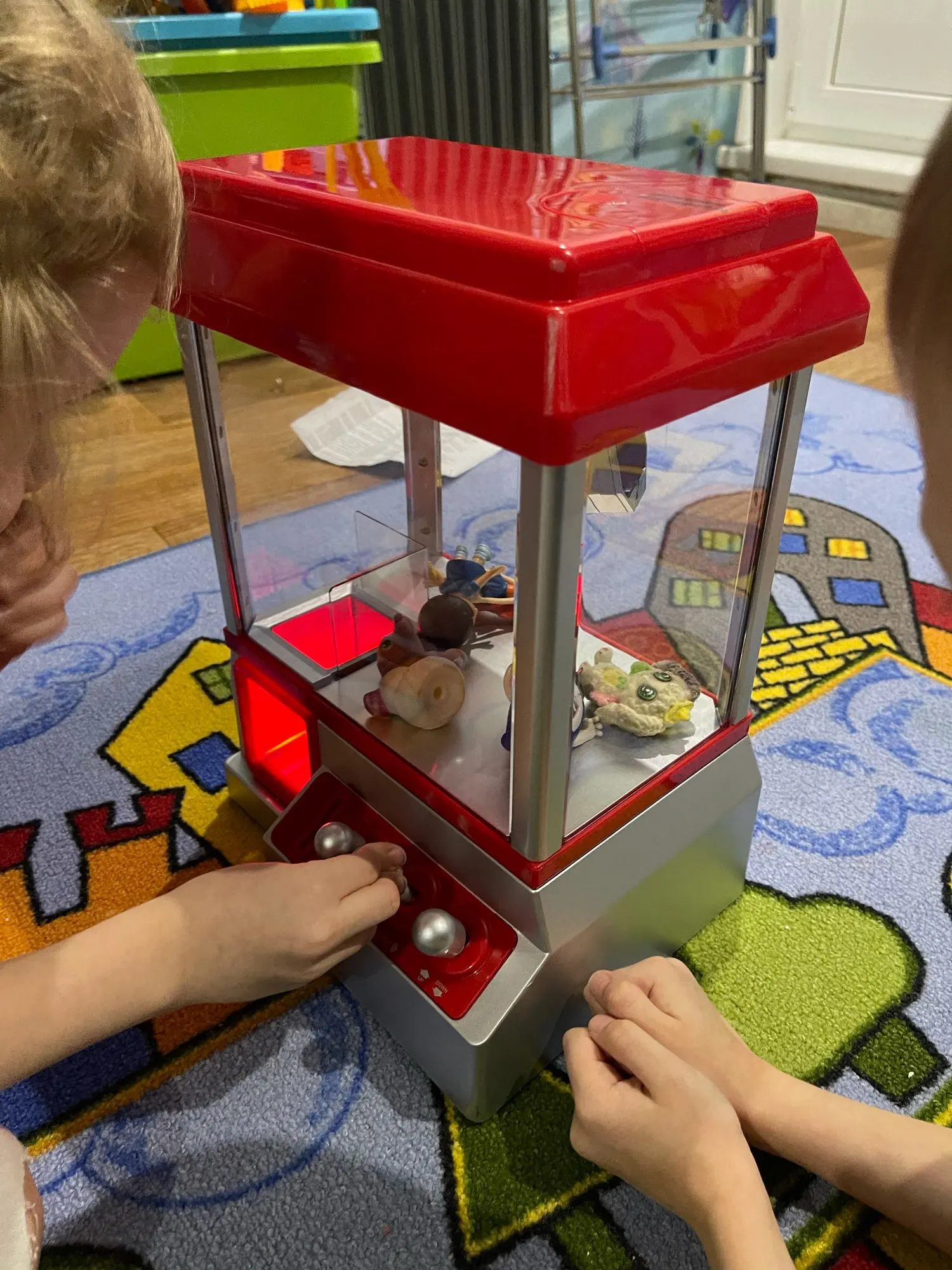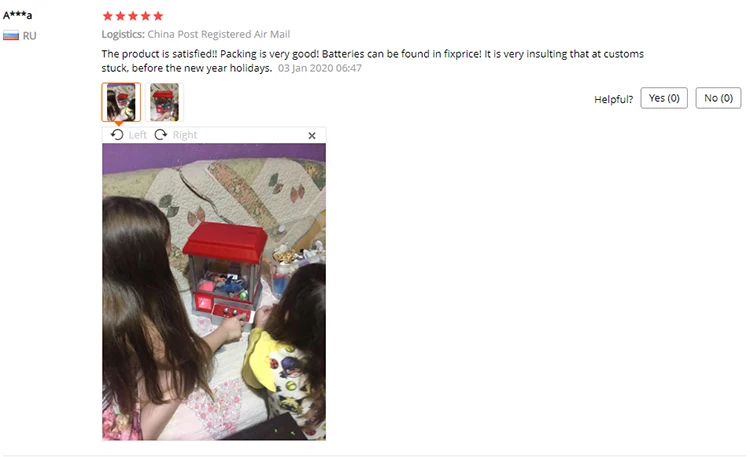 Классная игрушка. Все работает. Посылка пришла за 3 дня, отслеживалась. Упакована игрушка очень хорошо, не повредилась. Конфетки такие, как мини марс,твиксы и т.п не тянет, нужны поменьше. Минус игрушки в том, что когда заканчивается время, ковш хваталка) не возвращается в исходное положение, а стается там, где его застиг конец игры. Рекомендую