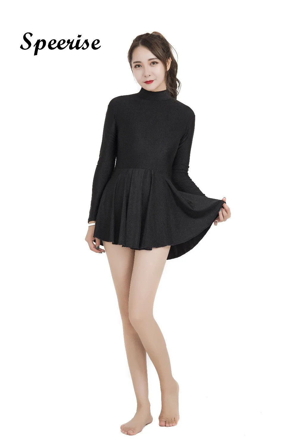 Speerise Женская водолазка с длинным рукавом юбка трико для балета и танцев гимнастическое платье с глубоким вырезом платья для занятия гимнастикой