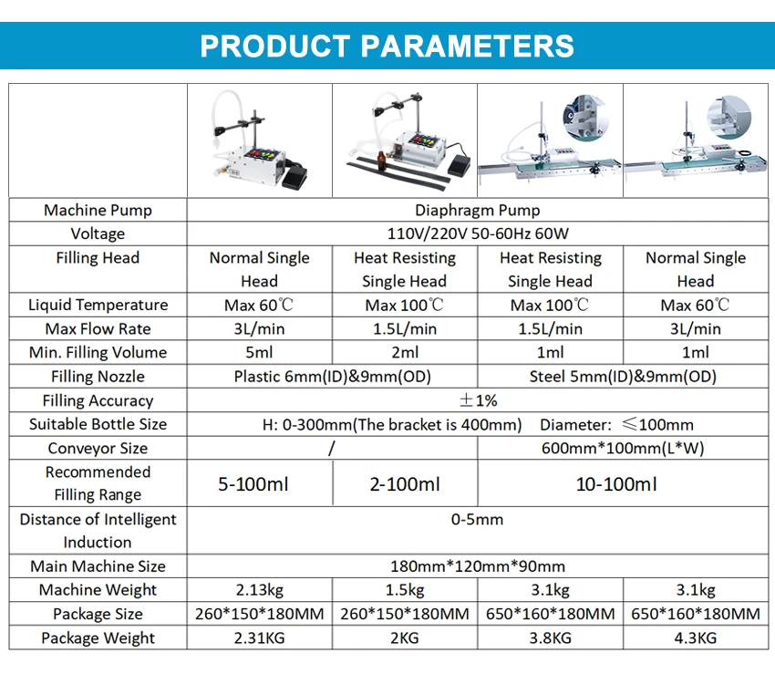 Подходит для наполненияНизкая вязкостьЖидкость, такая как сок, вода, уксус, соевое молоко и т. д. эта машина имеет небольшой размер и может работать автоматически, что является идеальным выбором для индивидуальной мастерской.