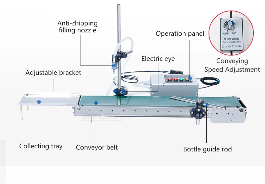 ZONESUN автоматическая машина для розлива жидкости, высокая термостойкость для парфюма, питьевой напиток, может чувствовать высокую точность