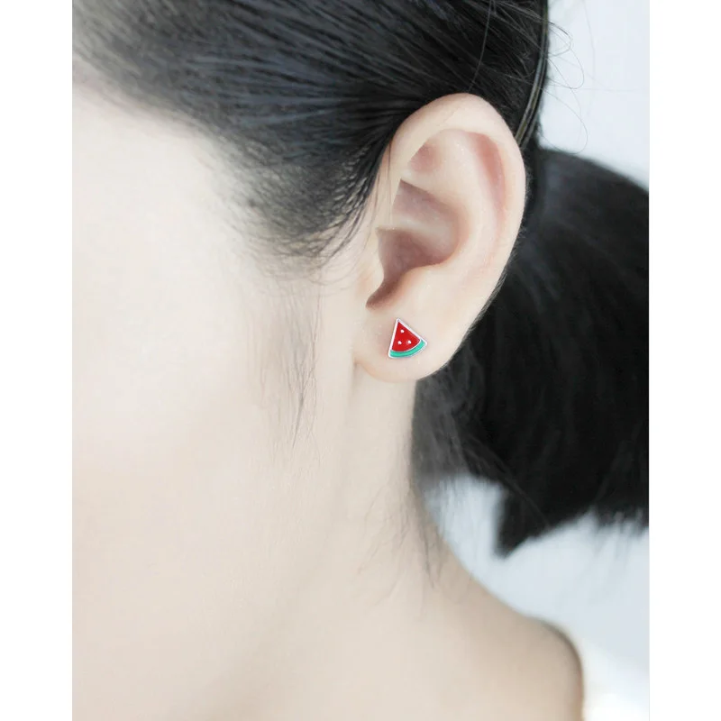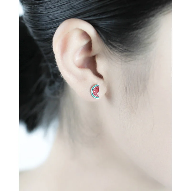 Trusta 100% 925 Настоящее серебро ювелирные изделия Модные крошечные Асимметричные летние серьги-гвоздики с арбузом для девочек и дочек DS572