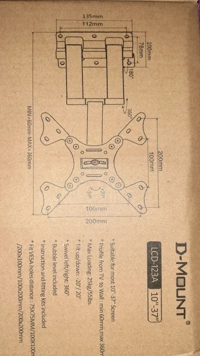 Я заказал его для телевизора 50 дюймов, 20*20, он стоит много и хорошо держит вес 13 кг, они отправили его очень быстро, и я прибыл менее чем за 48 часов GLS. Идеально подходит