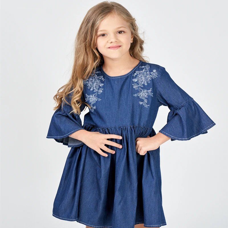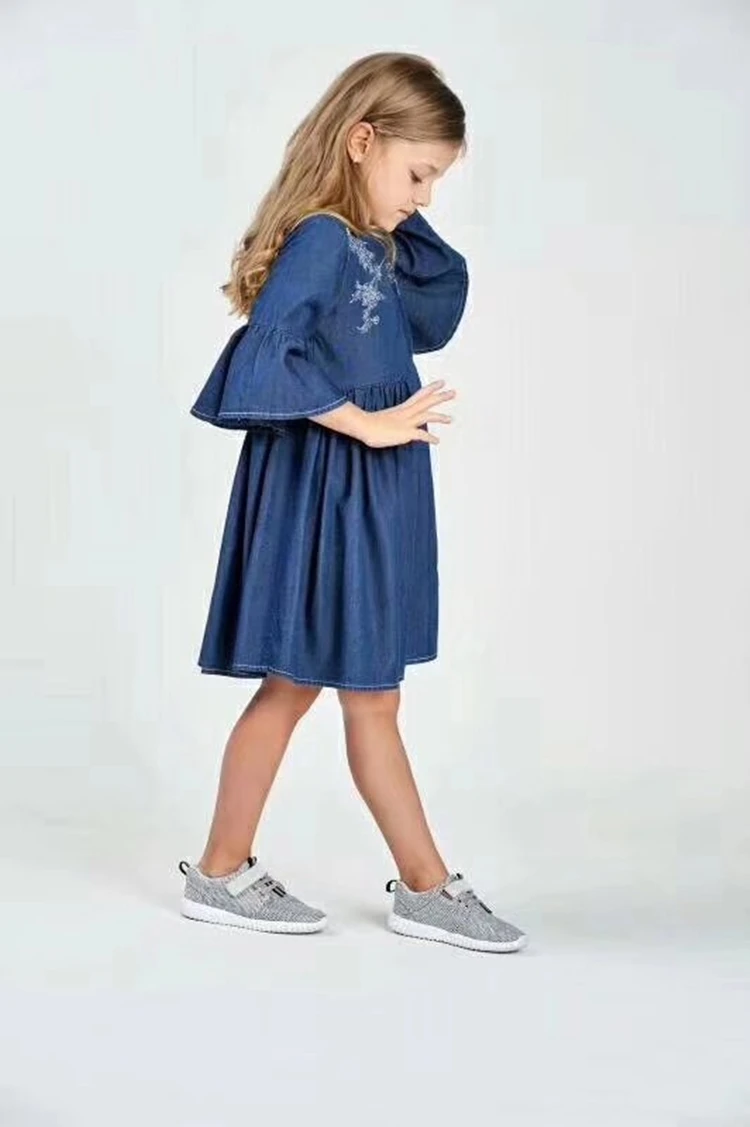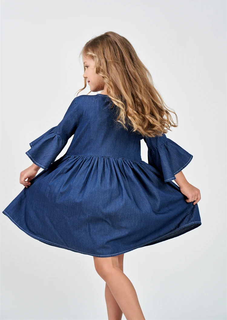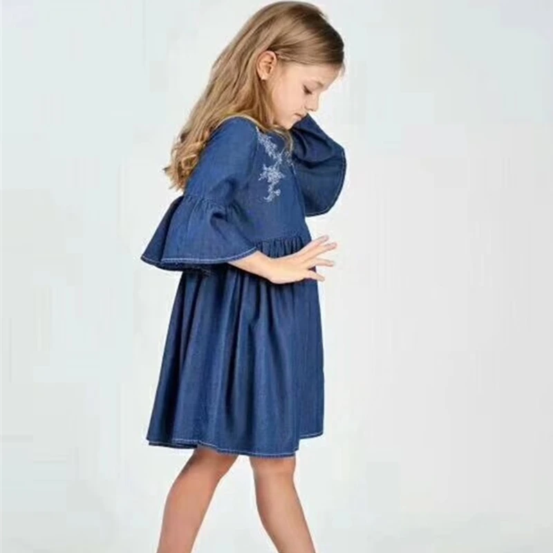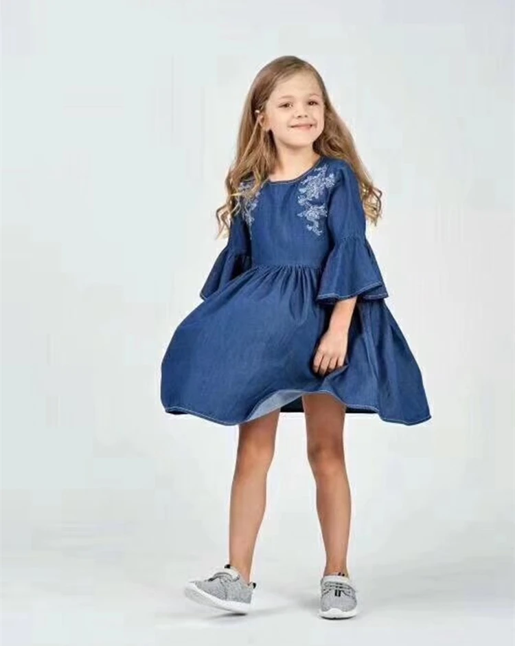 Новый модный дизайн, летние детские платья для девочек, джинсовая ткань в европейском и американском стиле, хлопок 100%, очень мягкие и крутые