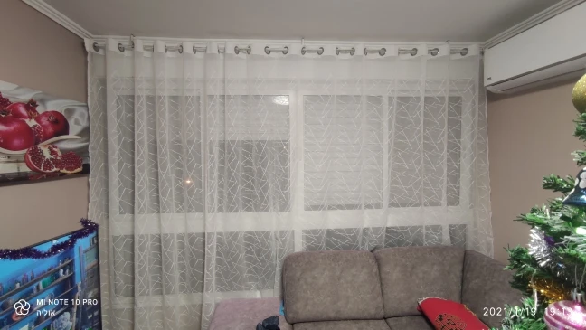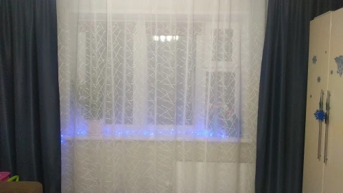 Тюль очень красивый, сшито аккуратно, очень широкая тесьма для сборки. Шло 2,5 месяца до Архангельска. Лучше использовать без штор или высота потолка больше 2,5 м, т.к. рисунок ярко выражен, и они не очень прозрачные.