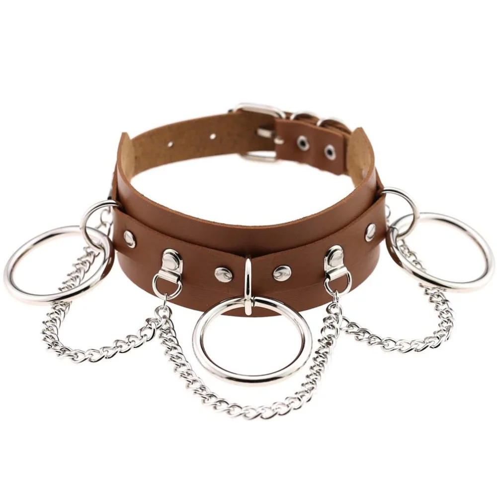 Женское кожаное ожерелье-чокер, ошейник в готическом стиле, ошейник...