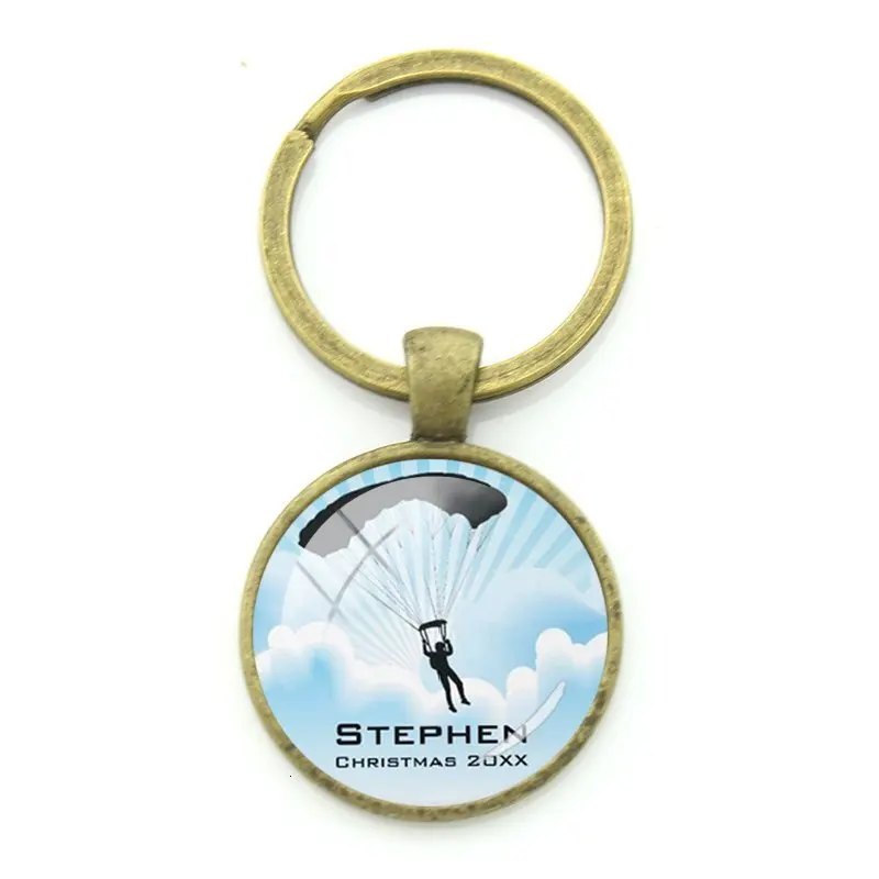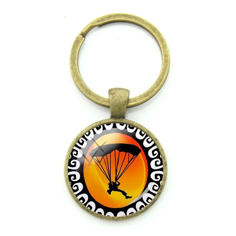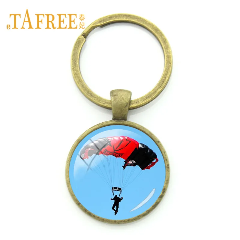 TAFREE сумка ключ кулон Skydiver фигура силуэт Брелок Талисман прыжки с парашютом круглый стеклянный сплав брелок подарок SD32 Изображение продукта: