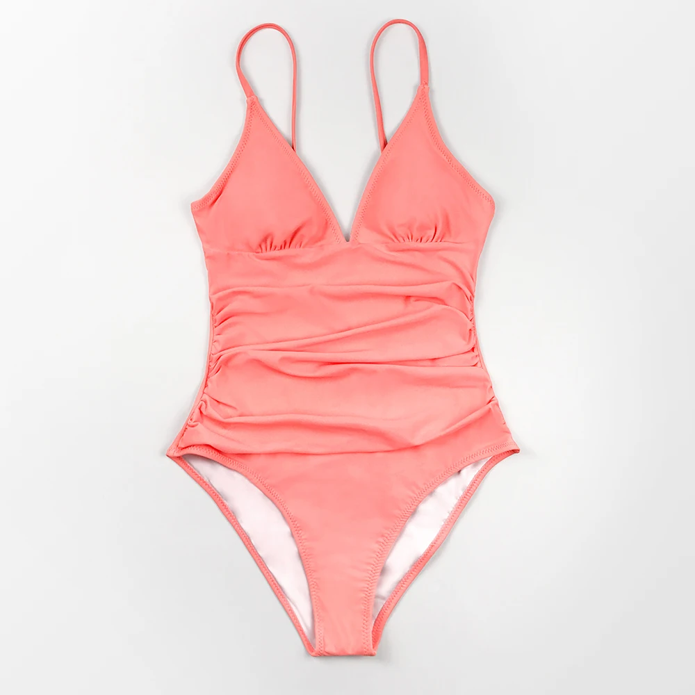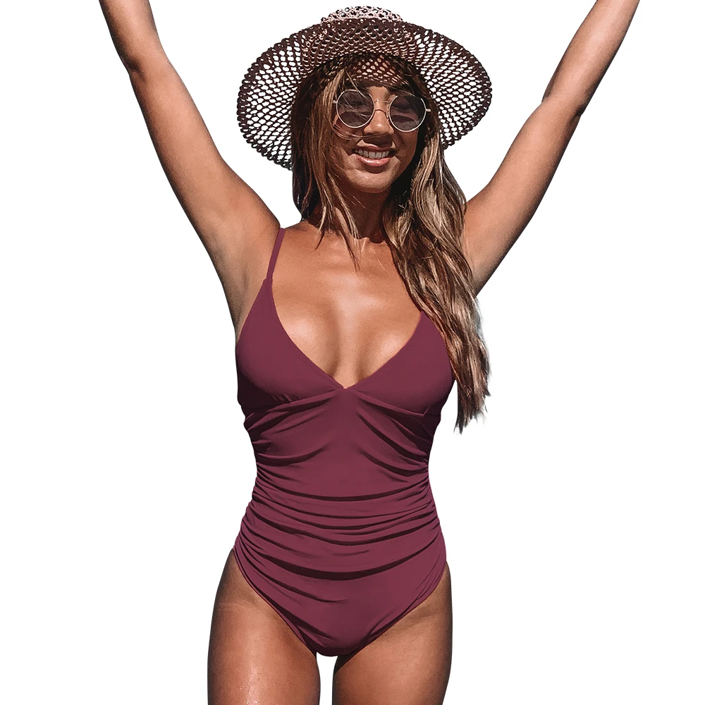 CUPSHE Цельный купальник с v-образным вырезом и оборками для женщин...