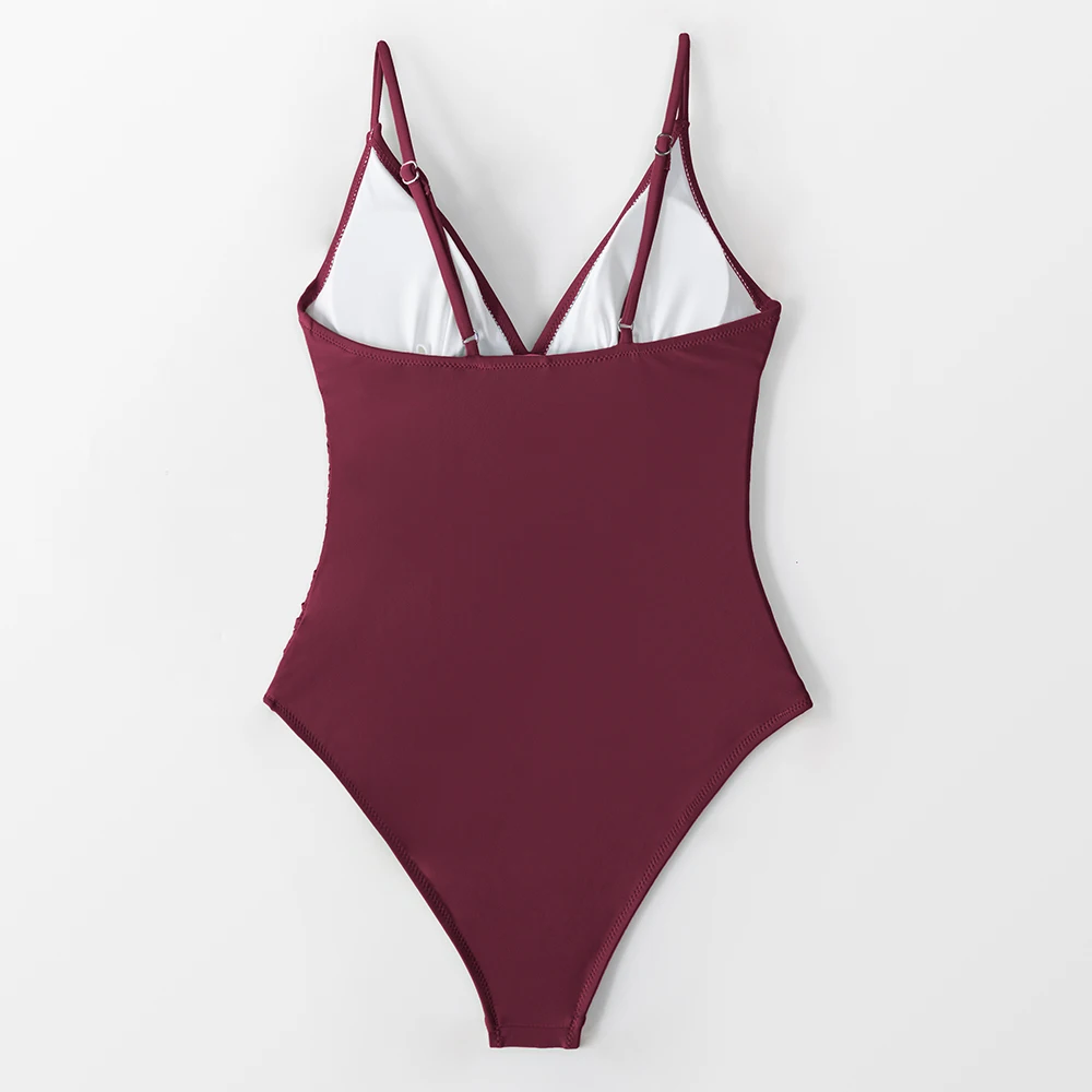 CUPSHE однотонный бордовый сетчатый купальник с v-образным вырезом,...