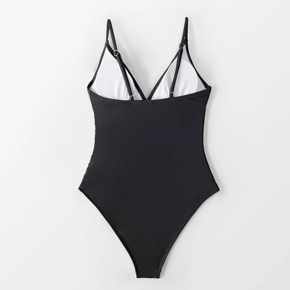 SEASELFIE черный цветочный вырез цельный купальник для женщин сексу...