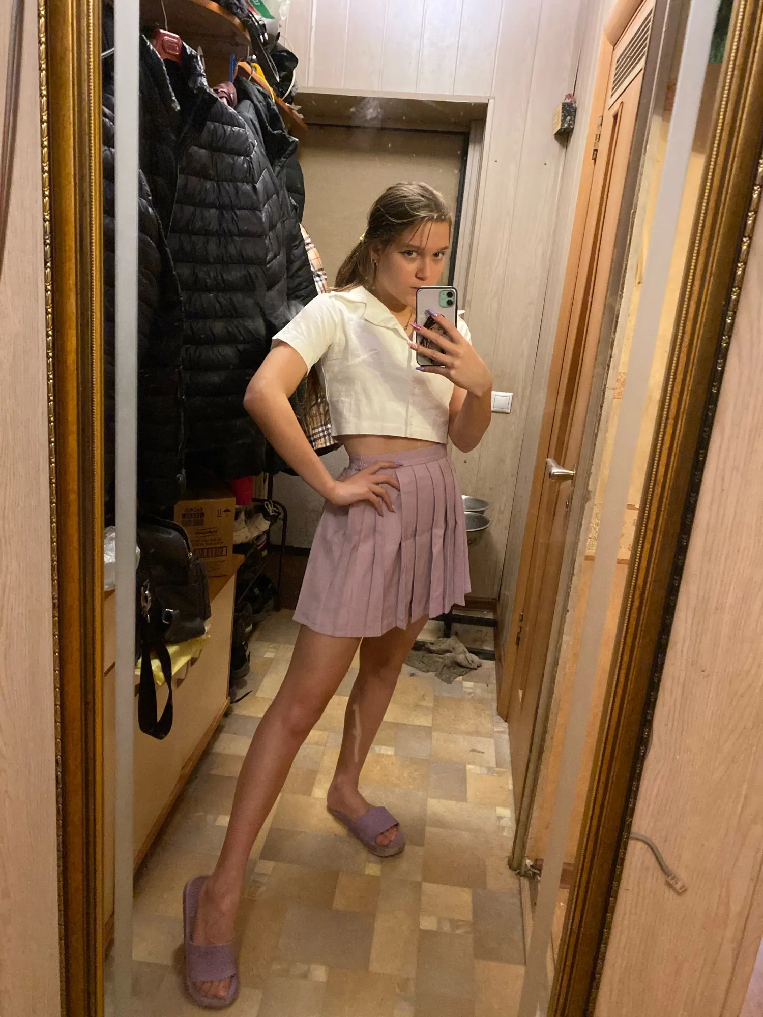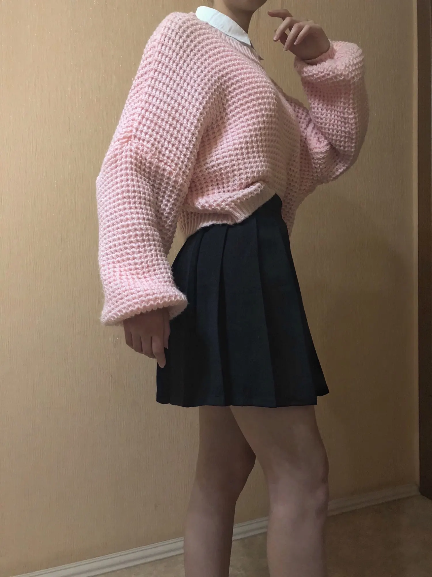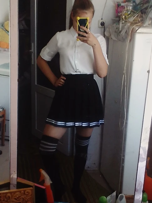 Юбка очень классная, доставка до Калининграда довольно быстрая (заказала 11.01, пришла 27.01) Безумно довольна, не пожалела. Длина приемлима для школы, буду ходить. Шорт нет, если кому-то надо. Единственный небольшой минус, это складки. Они не совсем правильно сформированы и проглажены, но не критично, всё поправимо. В подарок положили классный чокер, правда на мою шею он был большой, но я всё равно рада) Рекомендую продавца и товар)