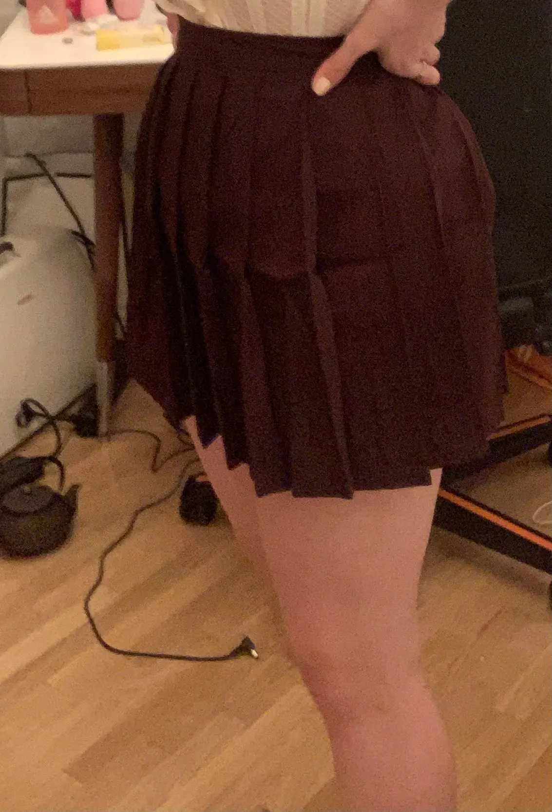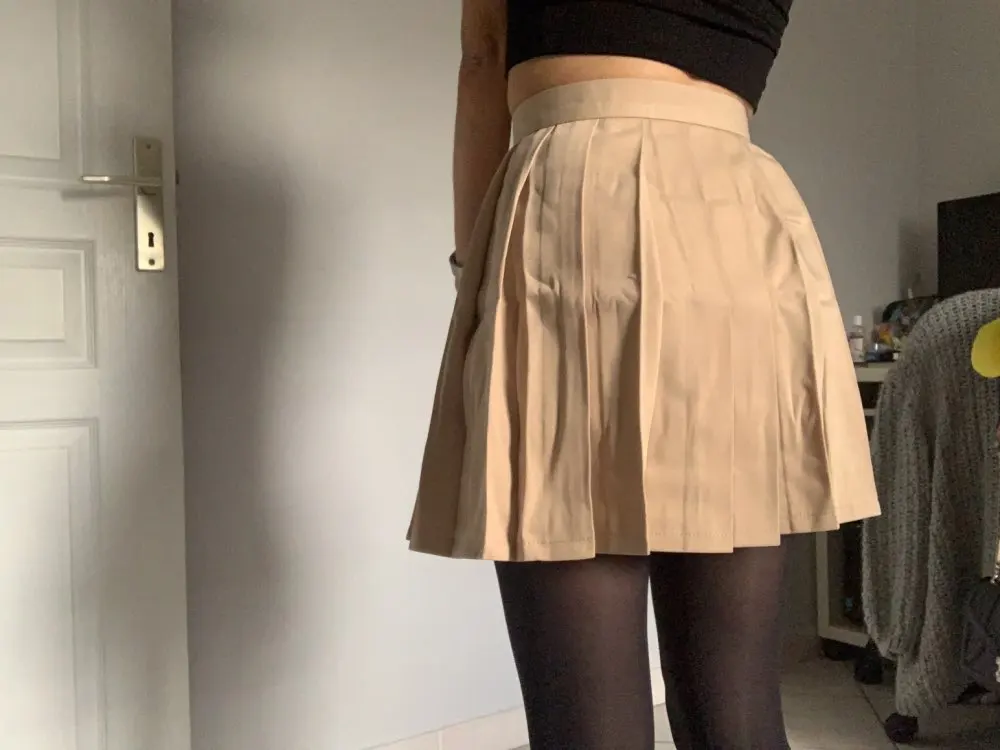 skirt is so gorgeous and quick shipping to UK!! this is defo one of my fav ever purchases!! I am going to buy one in white & blue unlike other skirts I brought on here for more expensive, this one has a perfect length that isn't too short!! and the seller sent a chocker as a free gift there was a crease though the middle where it was folded as you can see in the imagebut it will definitely iron out easily shipping to UK only took a week from the day that it was shipped thankyou