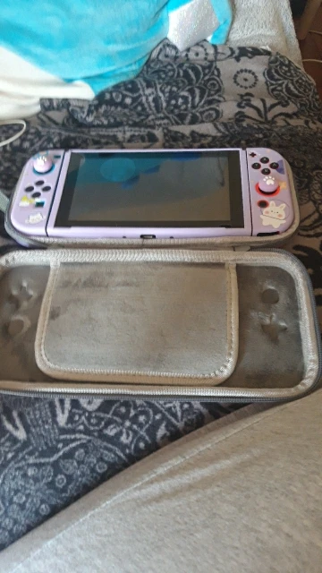 Прибыл очень быстро! Сумка и Чехол очень хорошего качества! Также поставляется с пластиковой защитной пленкой для экрана. Теперь мой переключатель выглядит очень мило и блестит! На чехлах joy con остались небольшие отметки, но ничего особенного! Очень доволен покупкой!