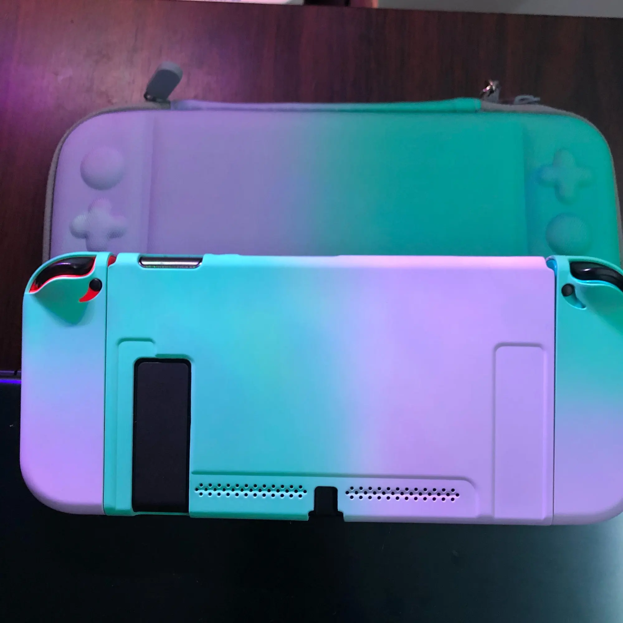 Этот чехол очень хороший! Ощущения при прикосновении Потрясающие, лапы, которые вы можете надеть на палочки, очень милые! Есть одна проблема с этим: Я заказывал розовый и фиолетовый чехол, но вместо этого я получил зеленый и фиолетовый. Этот цвет чехла тоже приятный, но не тот цвет, который я хотел. Я получил приятный сюрприз: весь комплект также имеет защитную пленку для экрана! Это действительно мило!