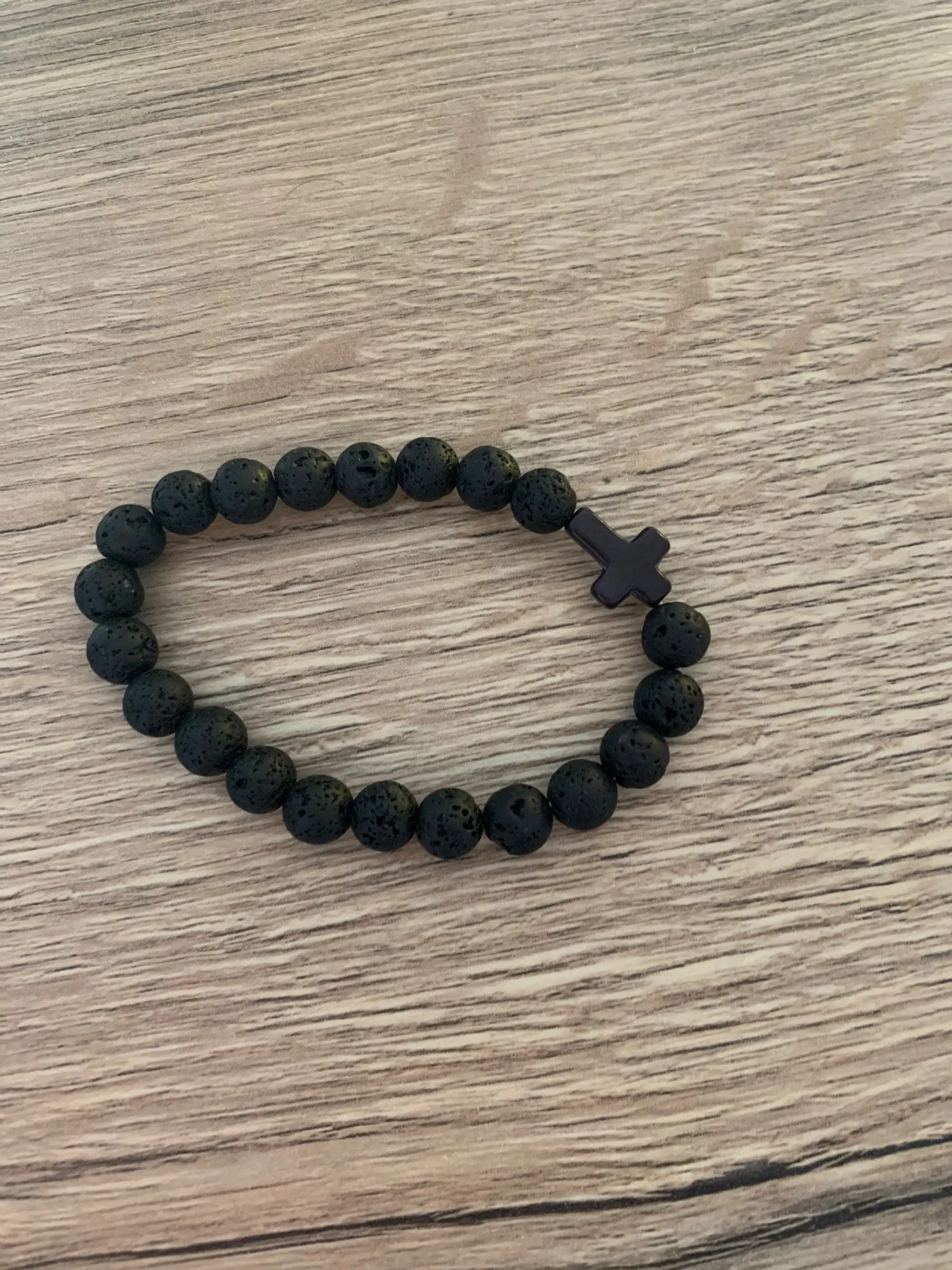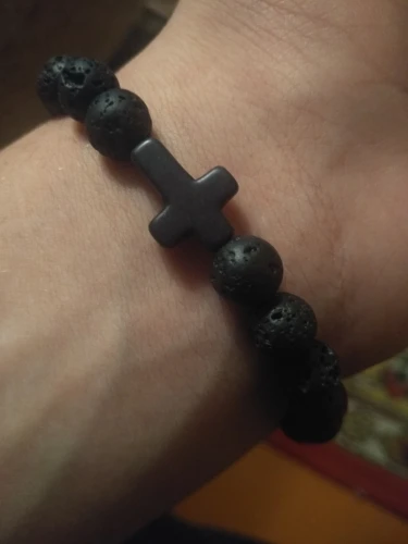 Шарм в виде креста с Иисусом, голубой бирюзовый, для мужчин, браслет из черной лавы, 8 мм, белые бусины, браслеты для женщин, ювелирные изделия для йоги