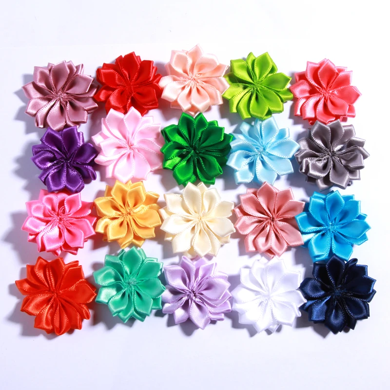 10 шт. 4 см искусственные цветы из атласа, Букет DIY цветов для аксессуаров для волос, розетка с острым цветком, без заколки для волос