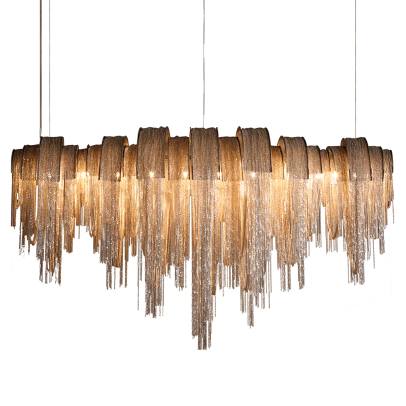 Современная роскошная светодиодная люстра с кисточками, креативный подвесной светильник для гостиной, гостиницы, кафе, серебристый, золотой алюминиевый подвесной светильник