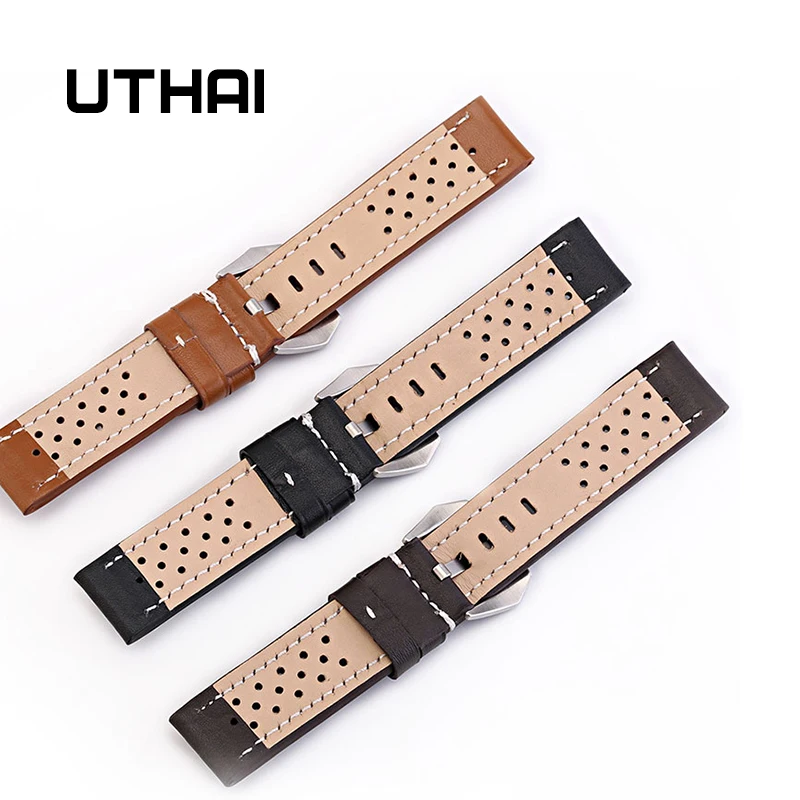 Ремешок UTHAI Z14 мужской из натуральной кожи, браслет для наручных часов в деловом стиле, аксессуары для часов, 20 мм 20 мм 22 мм 26 мм