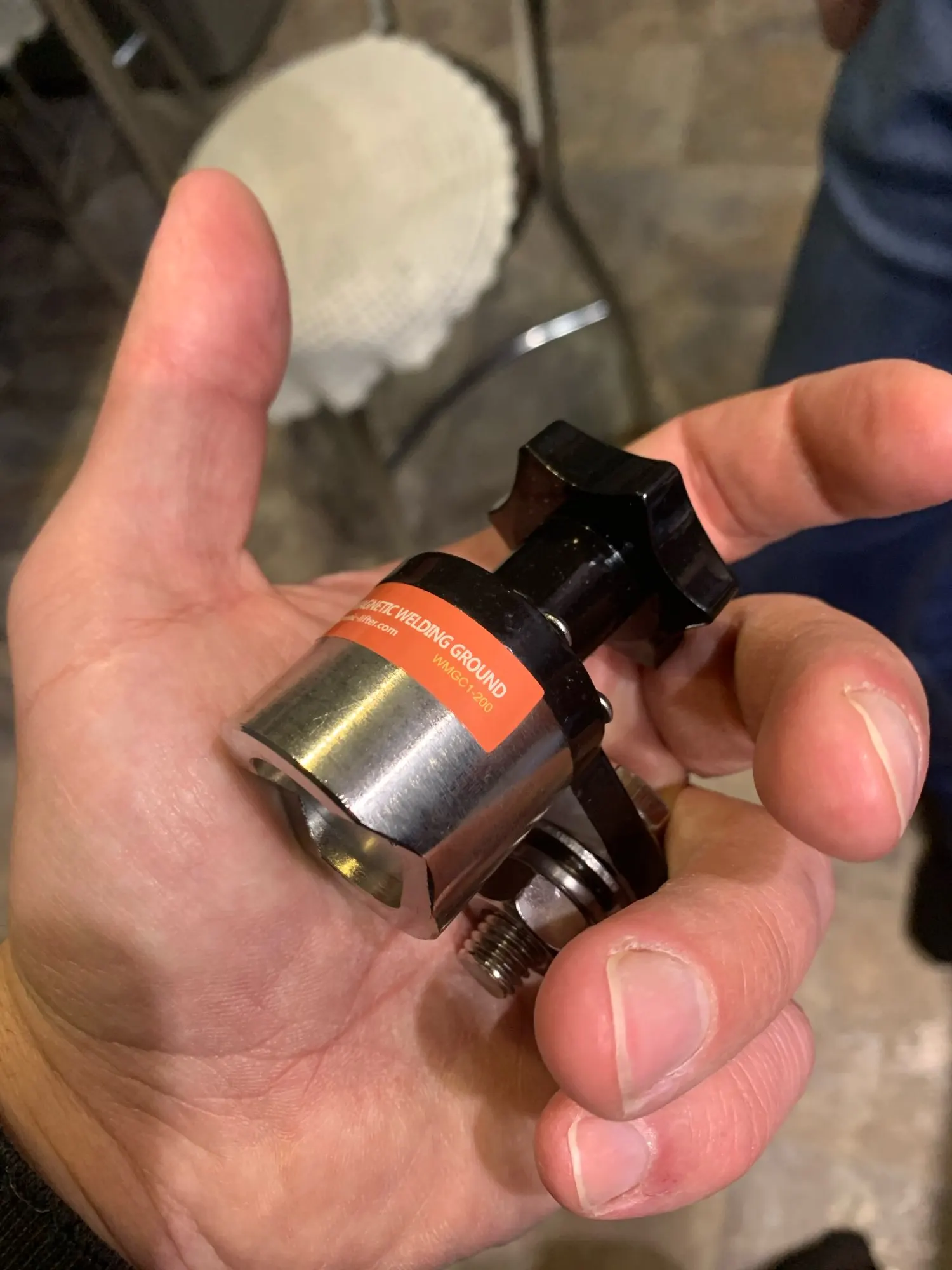 Выглядит хорошо, хотя на картинке она показалась немного больше, она измеряется высотой около 4 см и диаметром от 2,5 до 3 см. Магнит достаточно сильный и соединяет и отключает его от черного колеса. Я еще не пробовал его с сварщиком, чтобы увидеть, как он работает.