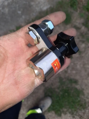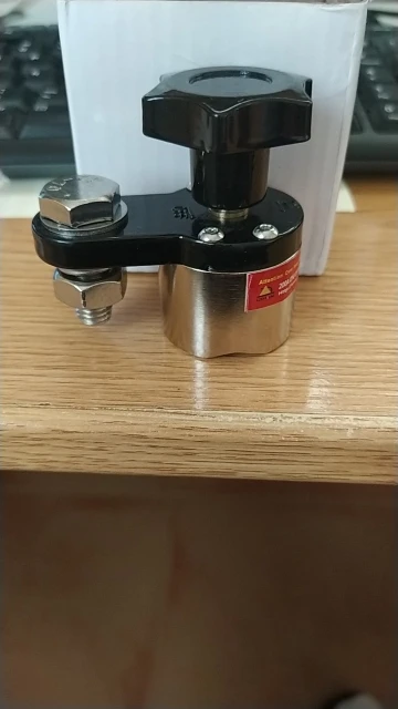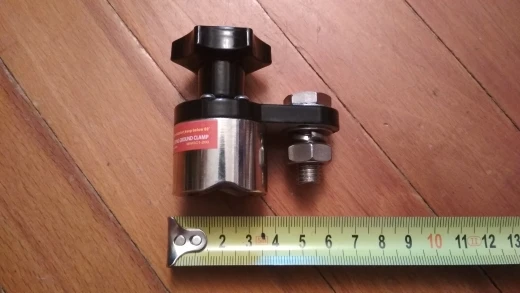 Хорошая магнитная масса. Сила отрыва не большая, но достаточная, чтобы держаться. Размер совсем миниатюрный, хоть и читал отзывы, не ожидал. В живую несколько иначе восприятие размеров происходит. Болт под крепление провода М10.