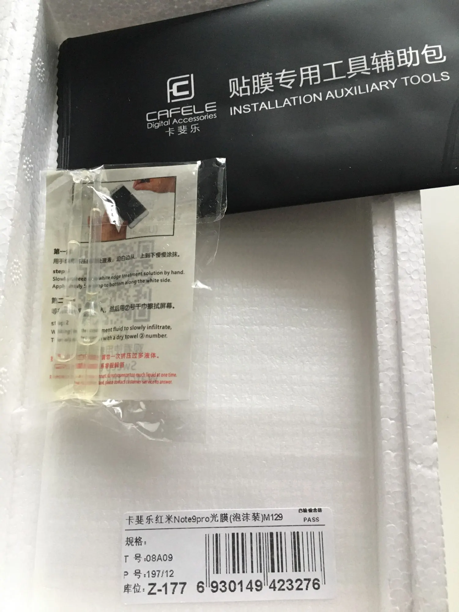 Доставка быстрая, но размер уже экрана миллиметра по 3-3,5 с обеих сторон. В комплекте салфеток и скотча (стикеров) нет, зато 2 тубы с маслом (зачем?). Олеофобное покрытие есть. Упаковано в пенопластовый коробок. Никаких свидетельств, что это именно Cafel нет. Снял, выбросил из-за неподходящего размера по ширине.