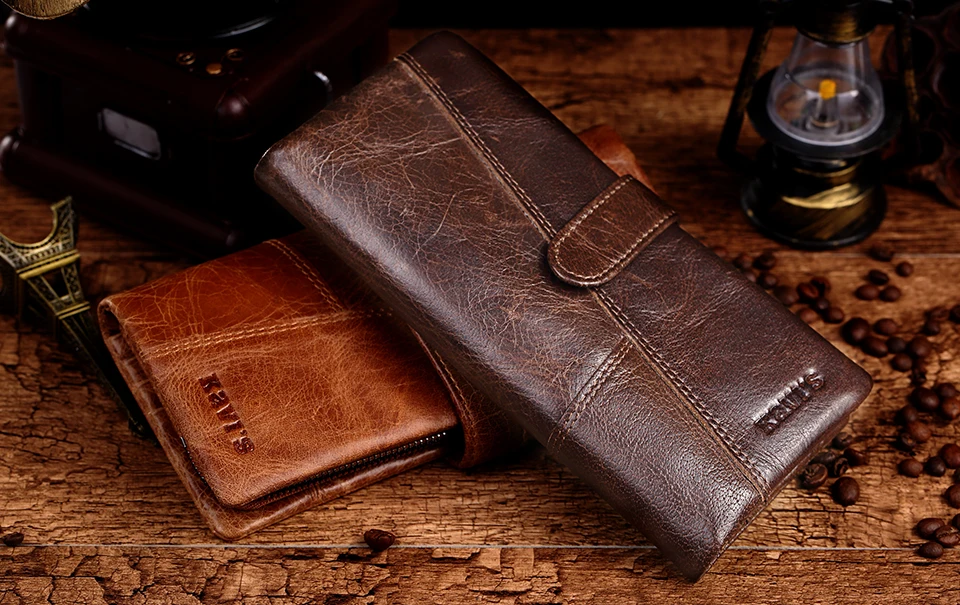 KAVIS, деловой Длинный кошелек из натуральной коровьей кожи, мужско...